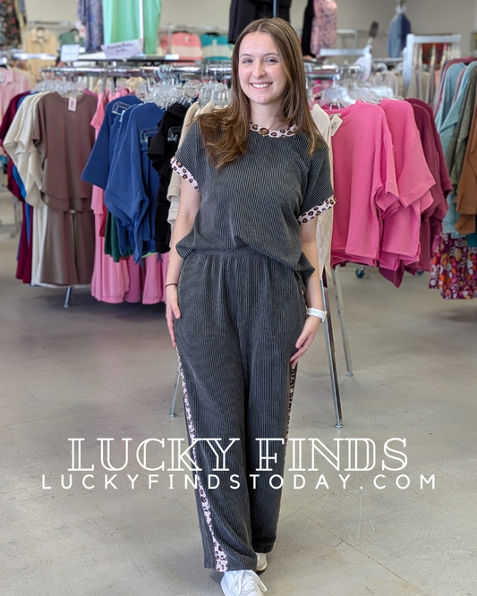 Amazing Leopard Trim Pants Set D1689