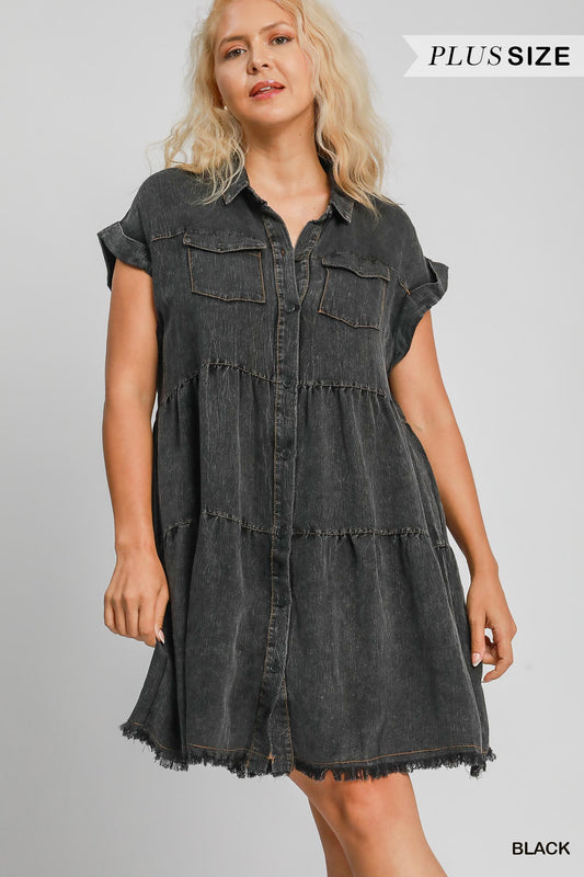 Arrives 4.2.26 Umgee Fancy Button Curvy Dress P507