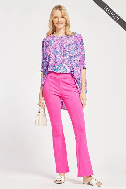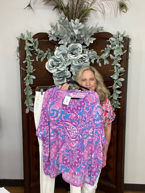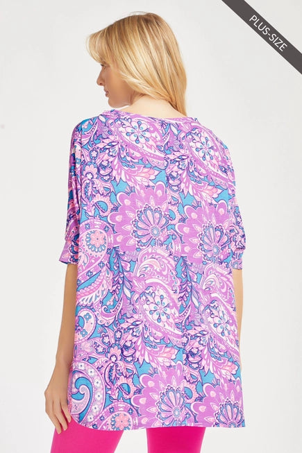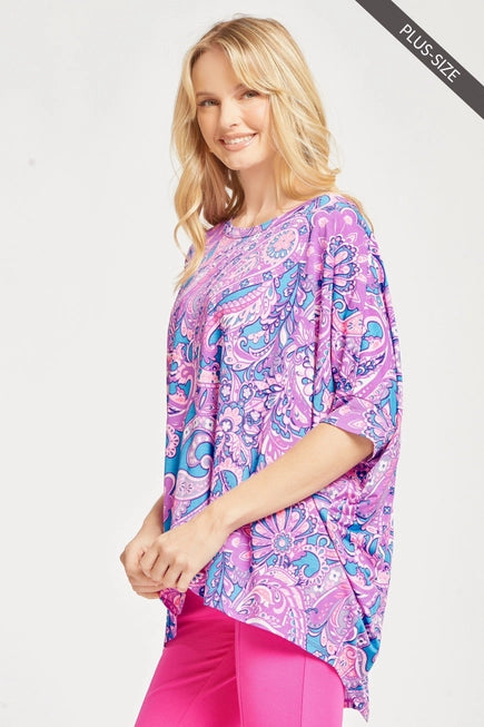 Cute Curvy Oversized Paisley Print Wrinkle Free Top w Dolman Sleeve