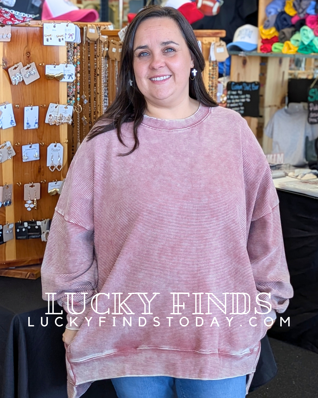 Vintage Oversized Washed Double Ribbed Pullover Top w Hi-Low Hem & Side Pockets, Drop Shoulder, 100% Cotton Knit
