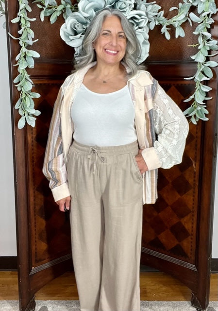 Comfy Wide-Leg Linen Blend Pants w Pockets