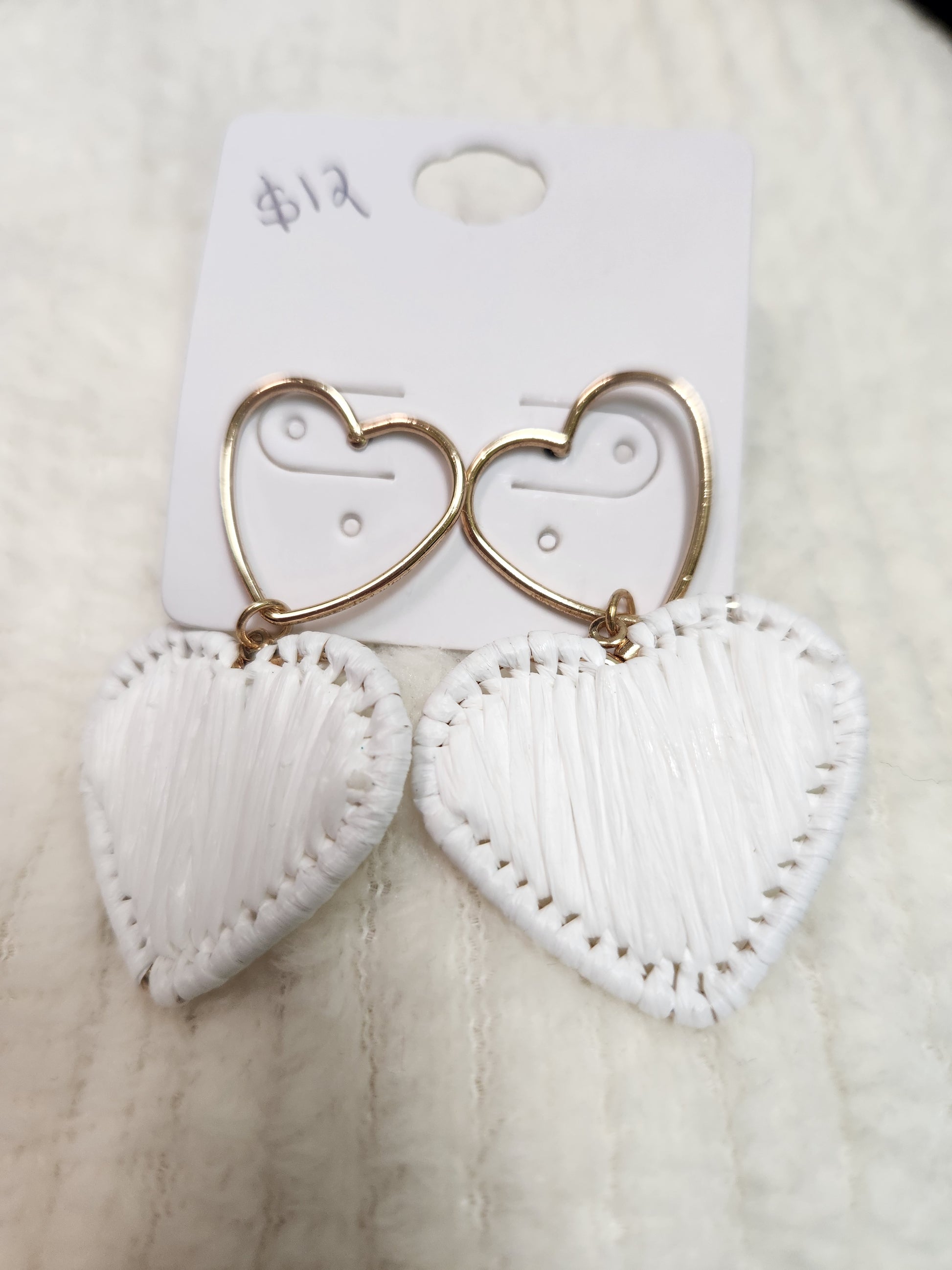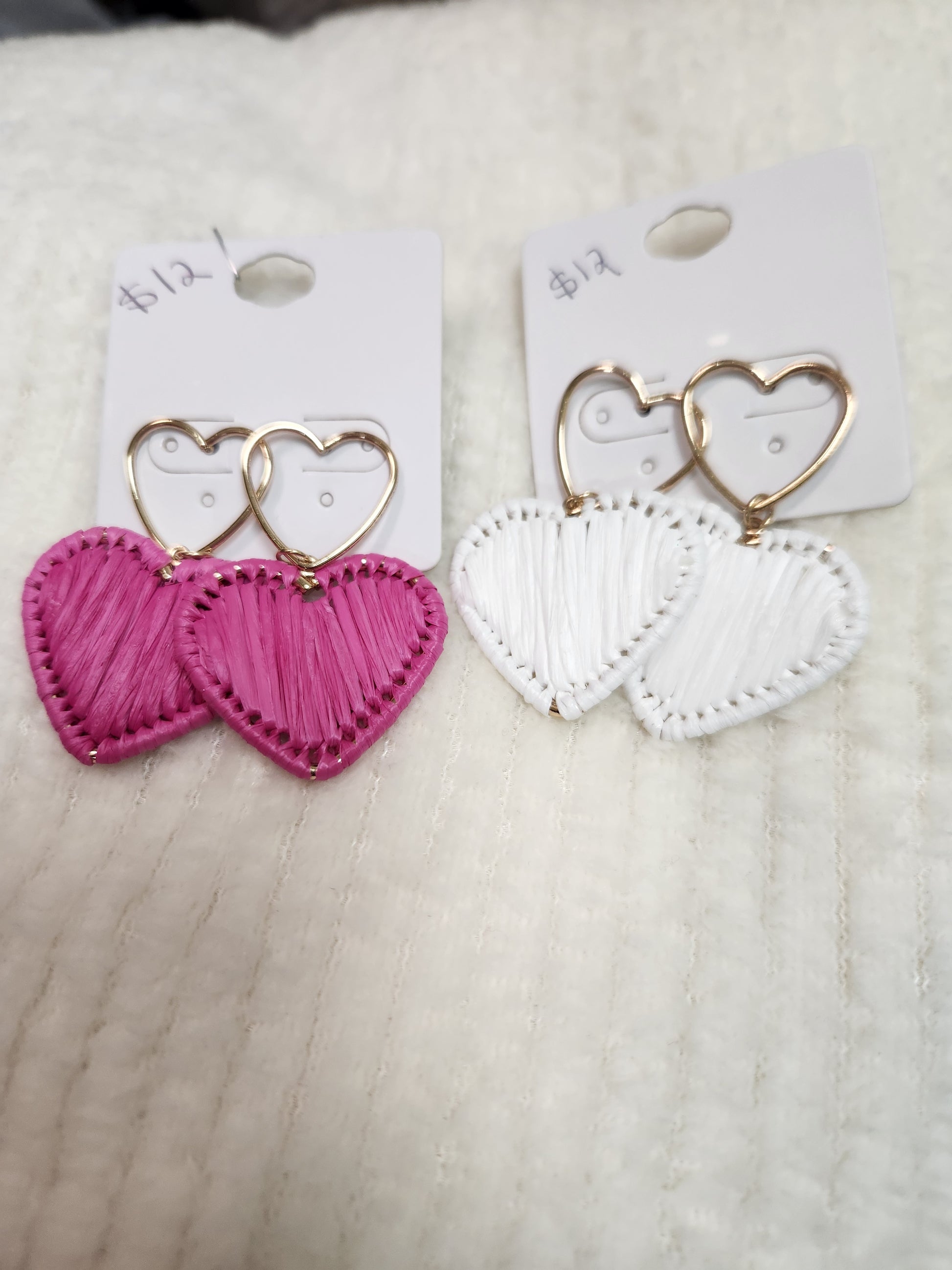 Open heart earrings with dangle hearts in pink or white. Post back