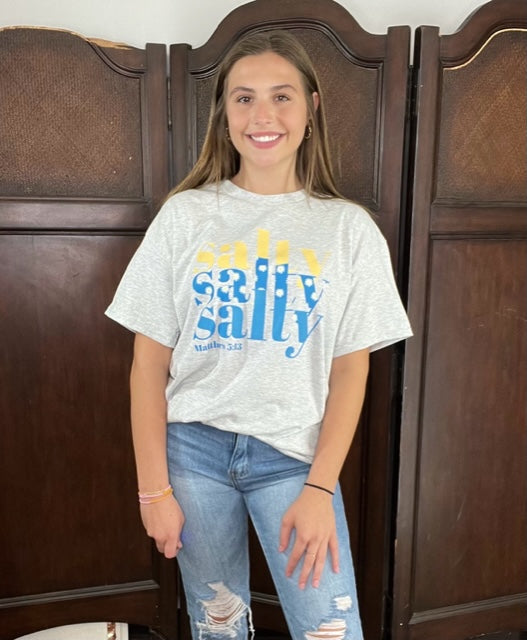 Salty Matthew 5:13 Gildan heather grey unisex tee. Shirts are made to order, processing 1 to 3 days.