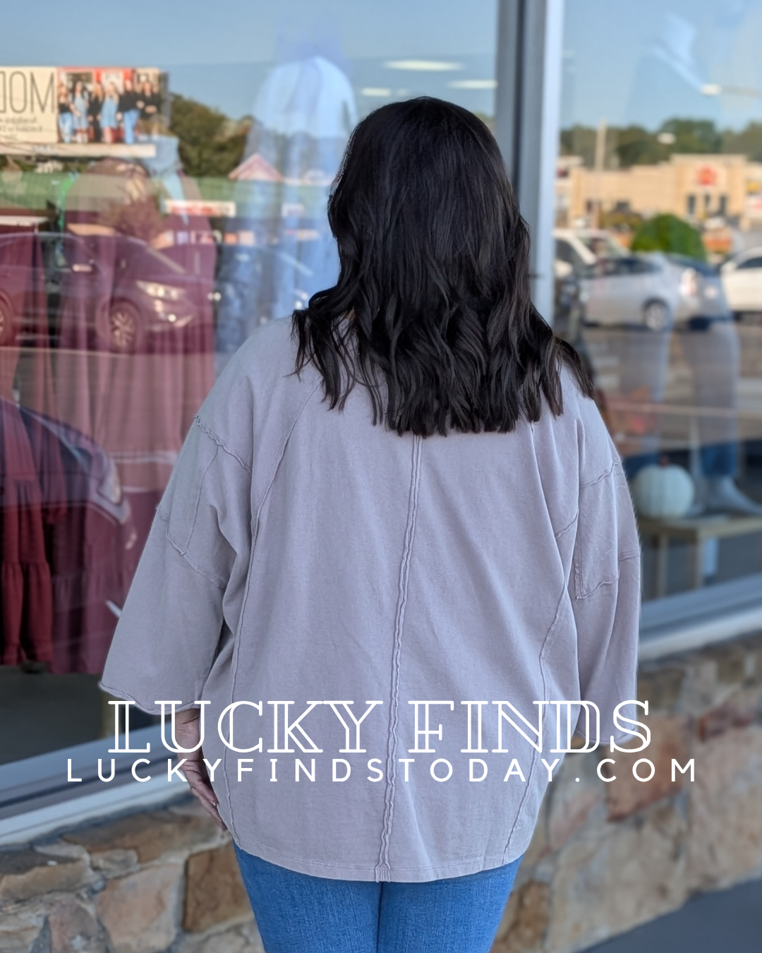 Gorgeous Oversized Washed Multi-Color Love Patch Top, 3/4 Sleeves, Drop Shoulder, Love Lettering Over Heart Patch