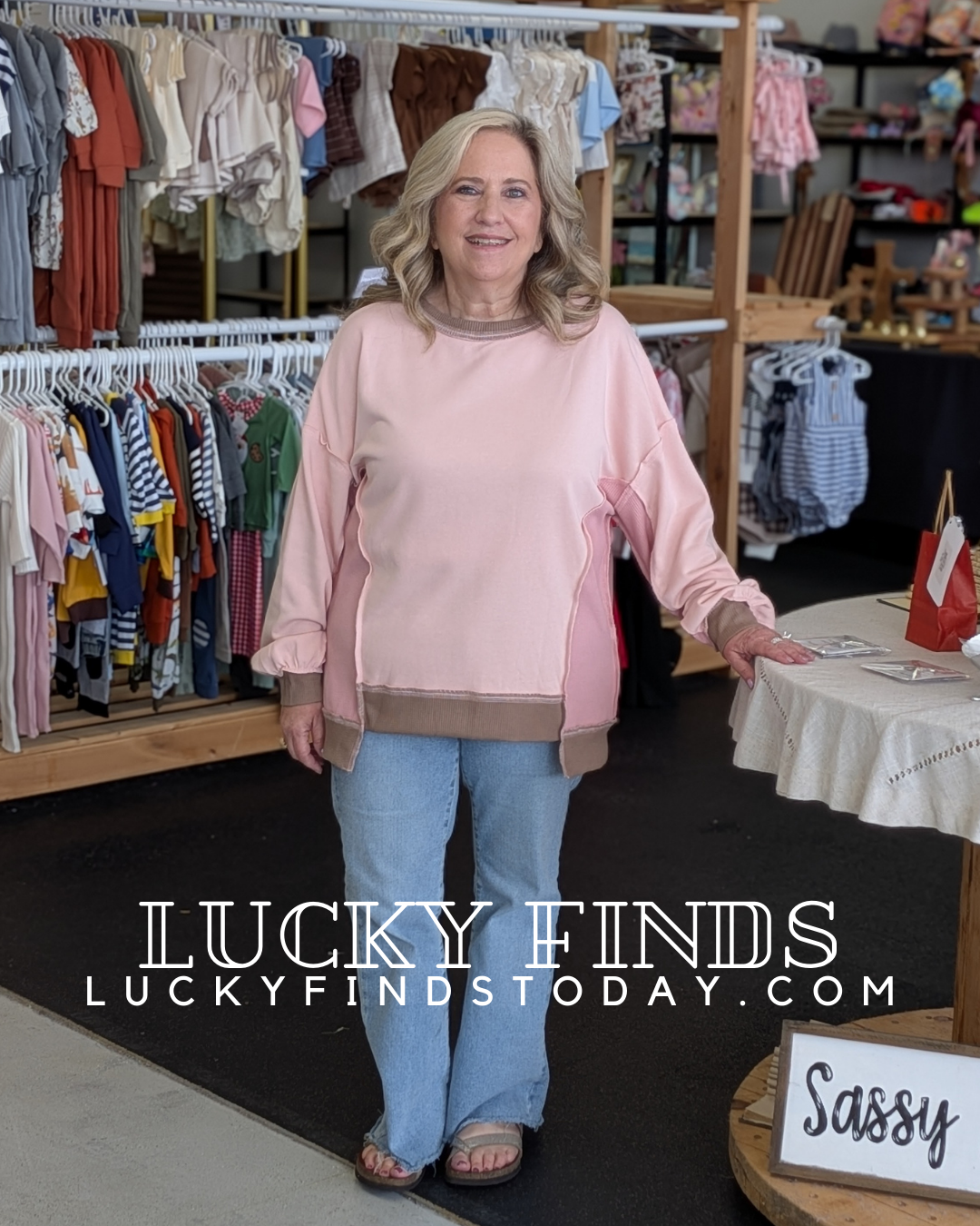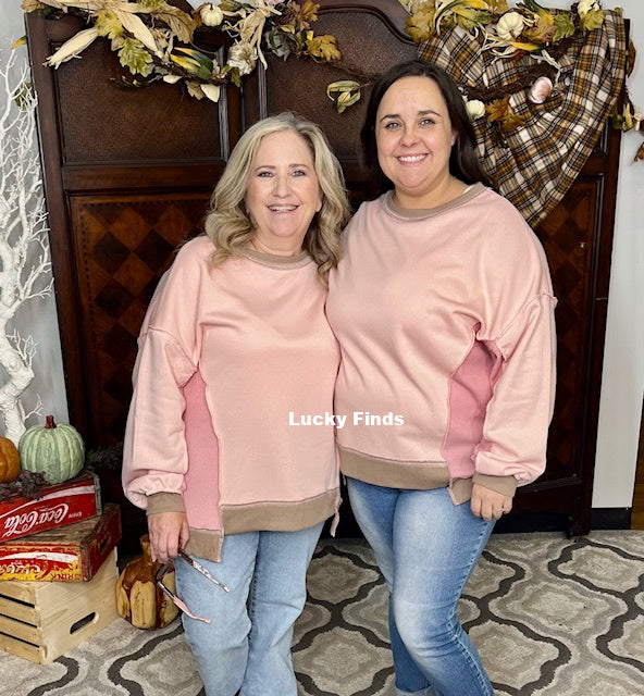 Comfy Oversized Washed Mix Waffle Knit/Textured Colorblock Patchwork Top w Exposed Seams
