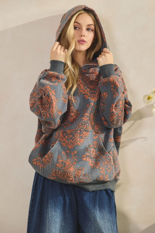 Cozy Soft Floral Print French Terry Hoodie Top