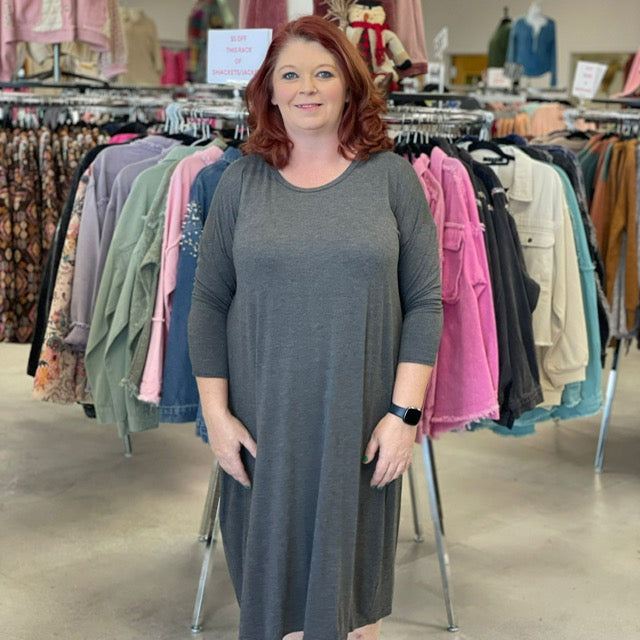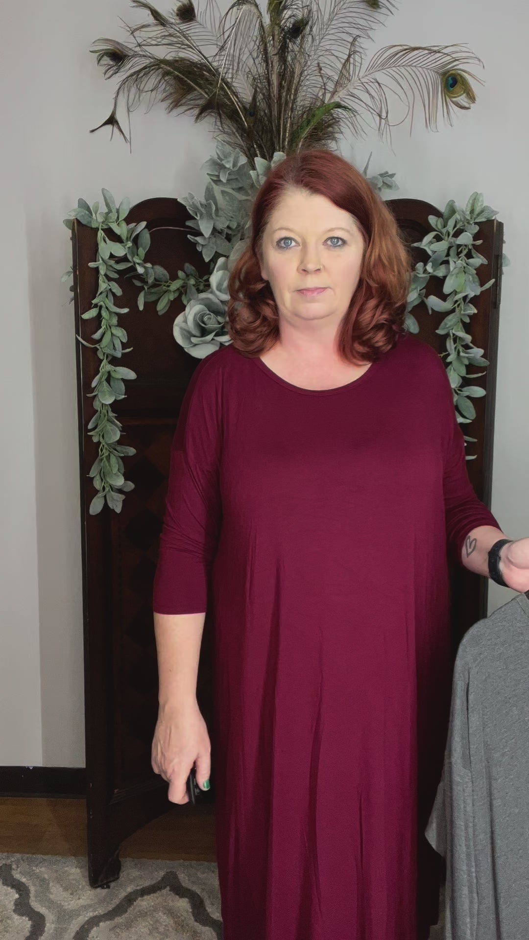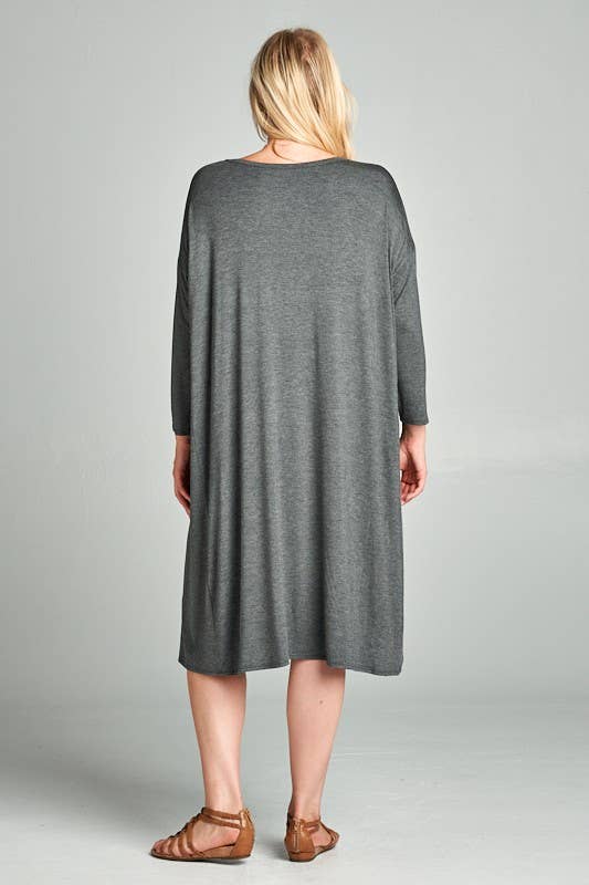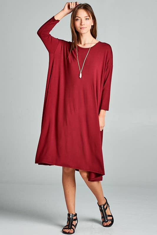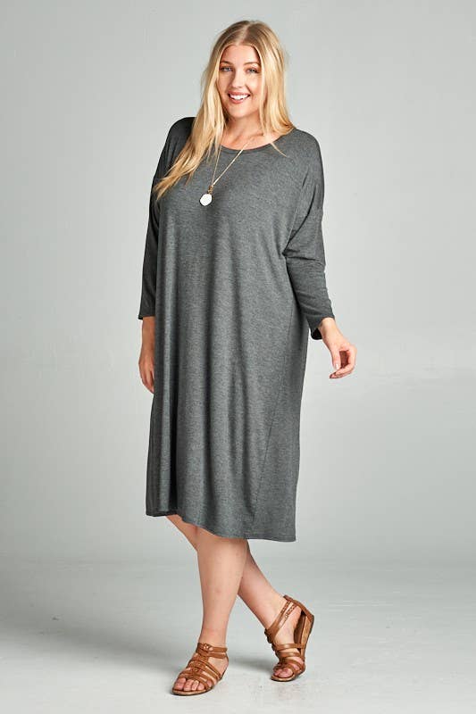 Plus Size Modal Solid Swing Knee Dress w 3/4 Sleeves *Look cute and casual with slip-on sandals with this solid jersey dress that is made from high-quality fabric and is not see-through* 95% Rayon Modal Jersey 5% Spandex