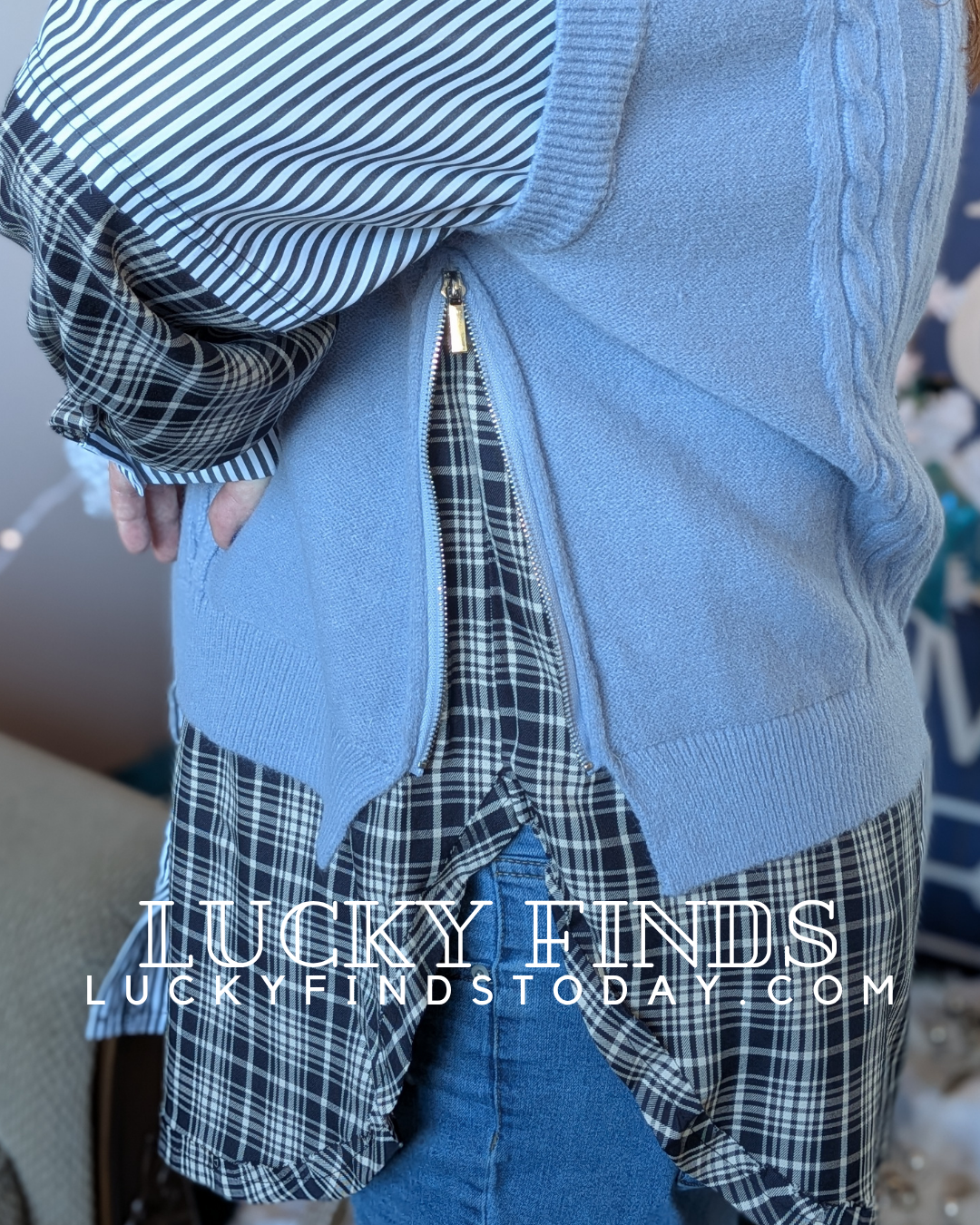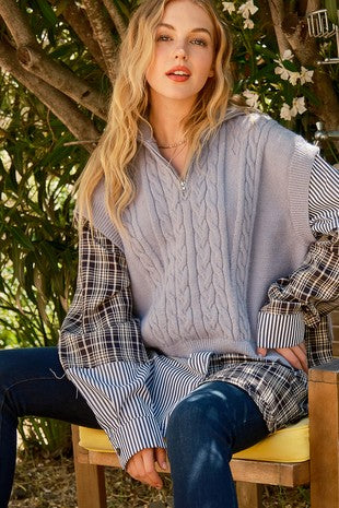 Eye-catching Plaid Shirt Sweater Vest Twofer Tunic