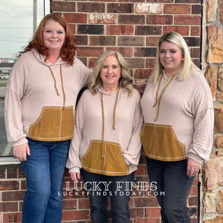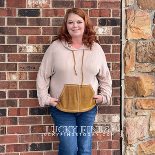 Comfy Color Block Hooded Top w Kangaroo Pocket