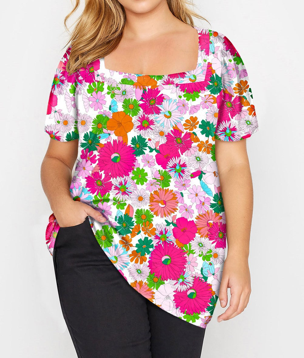 Stylish & Versatile Curvy Square Neck w Ruched Shoulder Detail & Short Sleeve