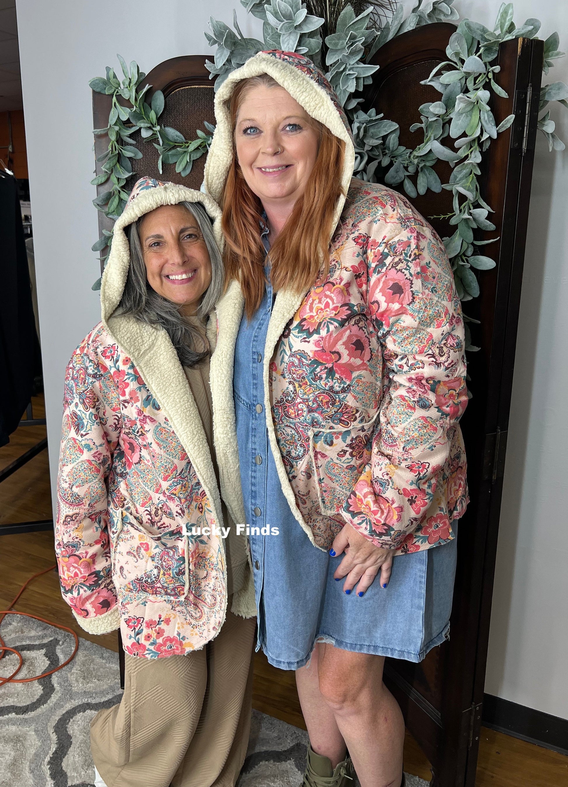Boho Vintage Multi Color Paisley Print Hoodie w Sherpa Lining, Side Pockets, Oversized
