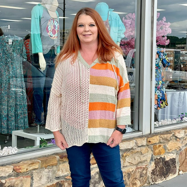This hooded sweater is one of the most fun things you will have in your closet! The split design gives this sweater a fun element and will have everyone looking to you for fashion advise