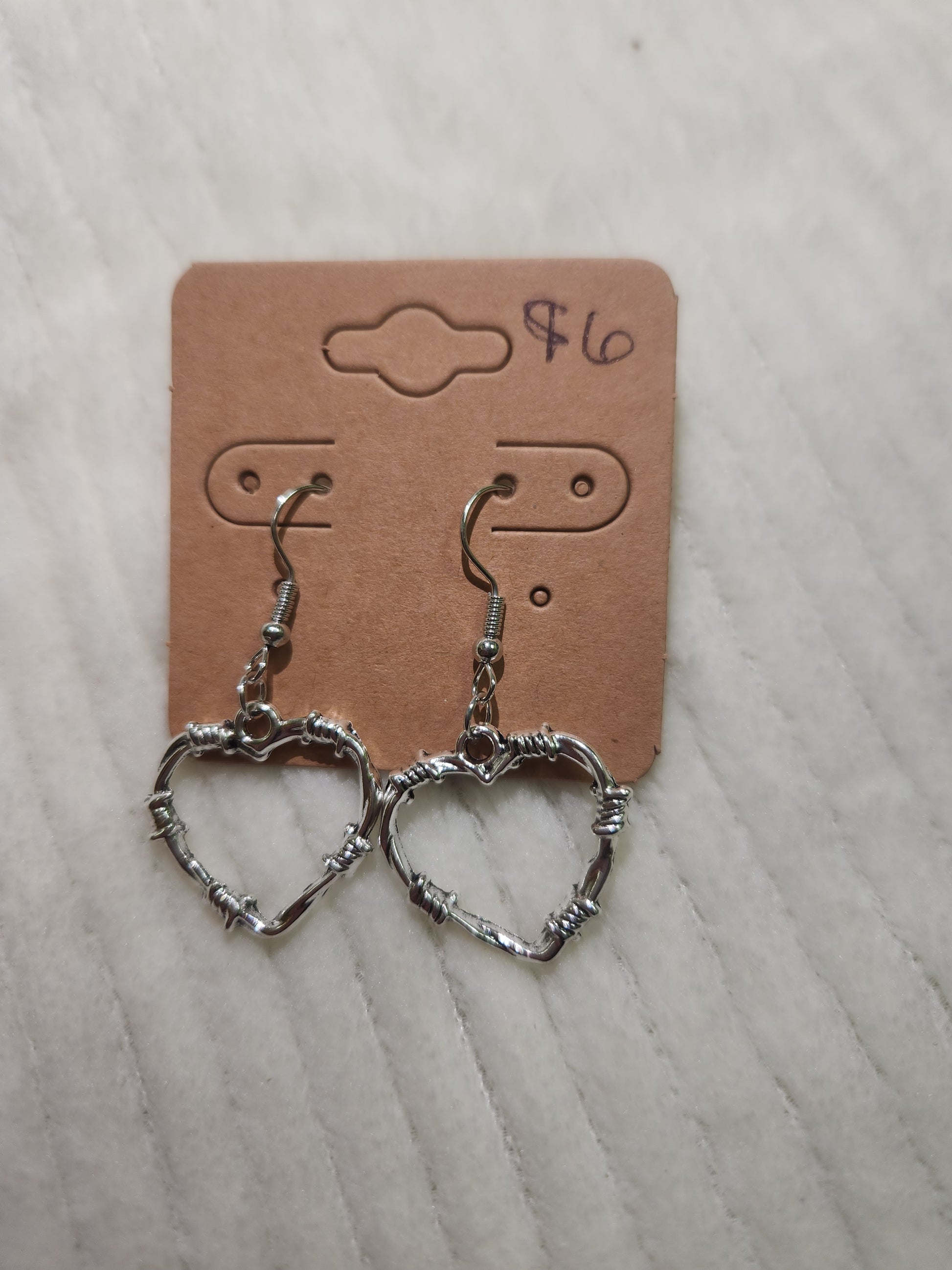 Silver barbed wire heart shape lightweight earrings