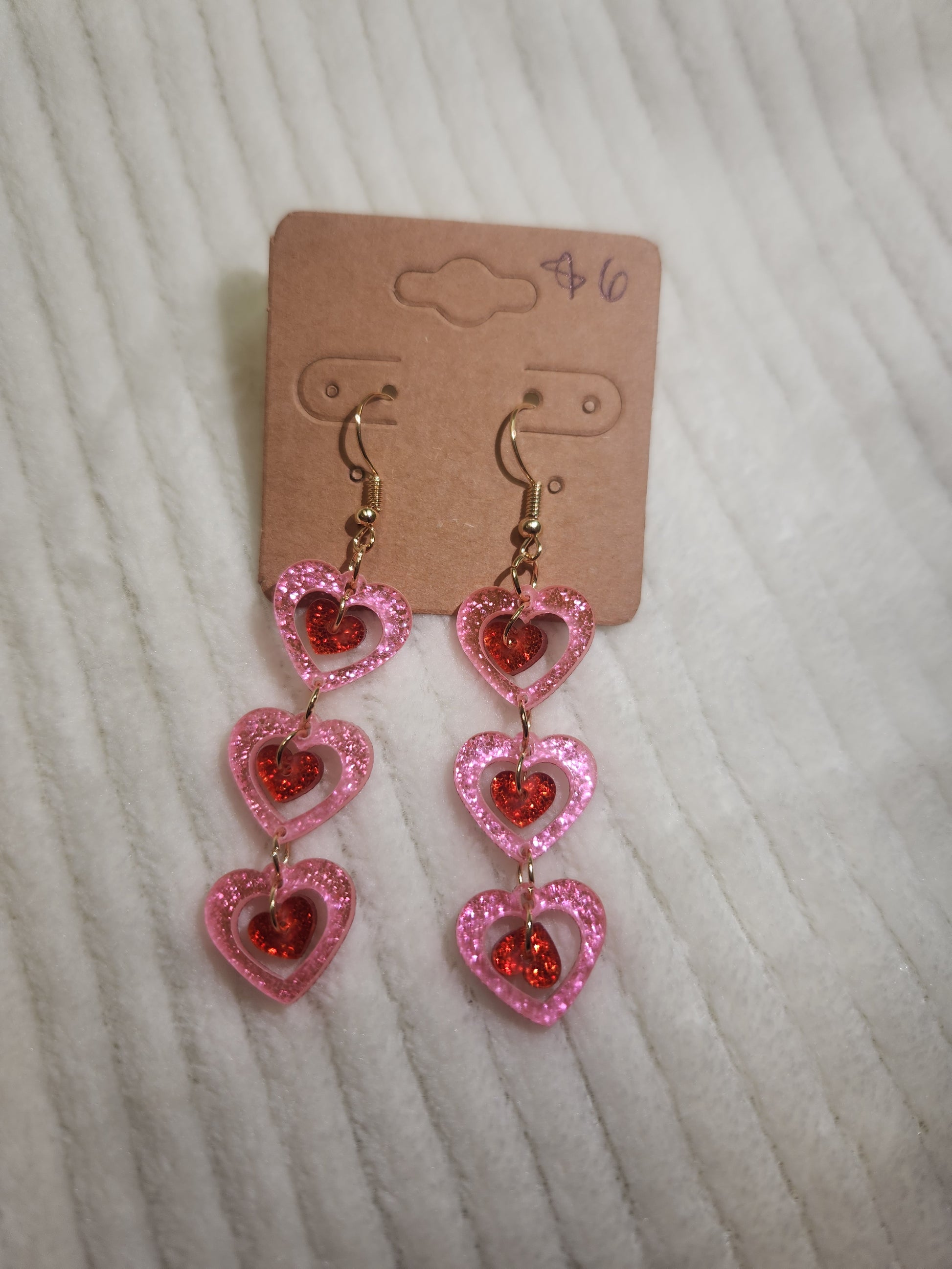 Pink and red stacked heart shape lightweight earrings