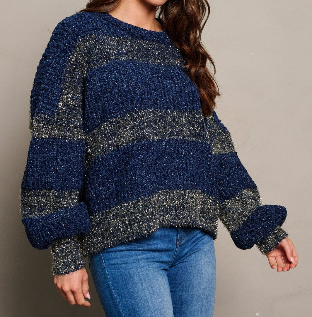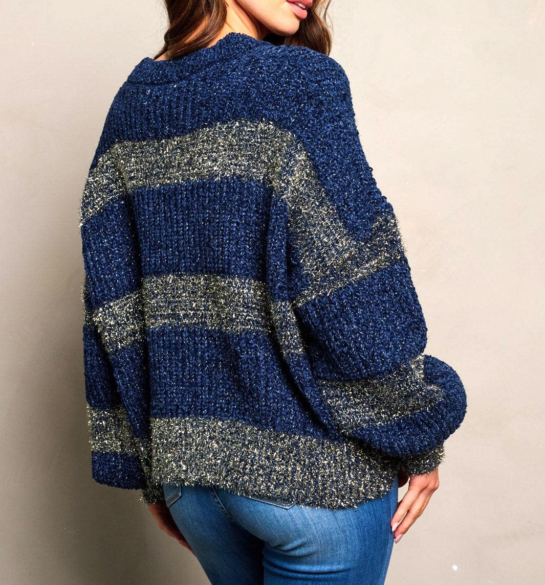 Cozy Oversized Pullover Color Block Shimmer Sweater