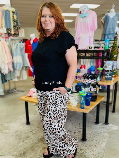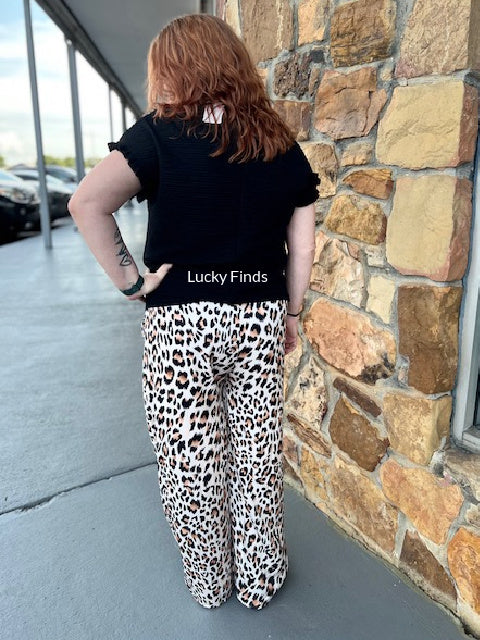 Casual Leopard Print Drawstring Flowy Wide Leg Lounge Pants