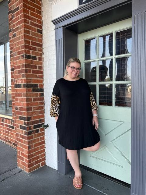 Cute Curvy DTY Solid Tunic w Fun Animal Print Balloon Sleeve, Cuff Detail, Side Pockets