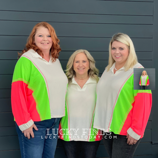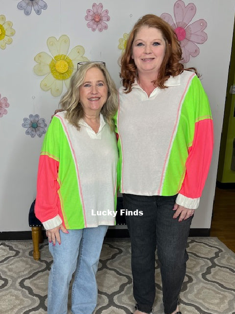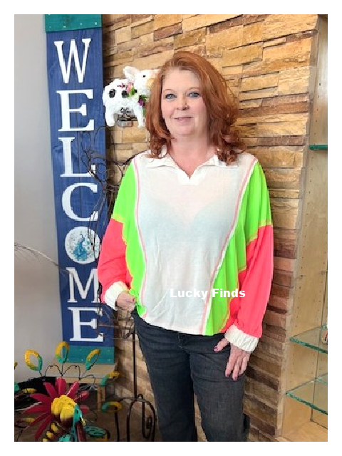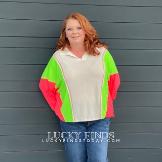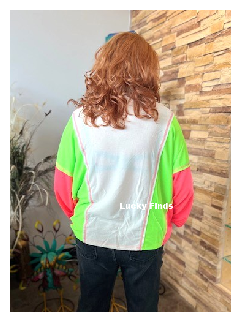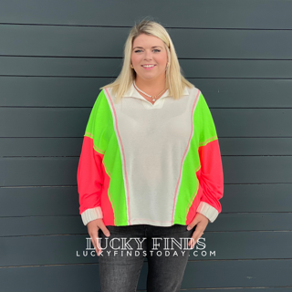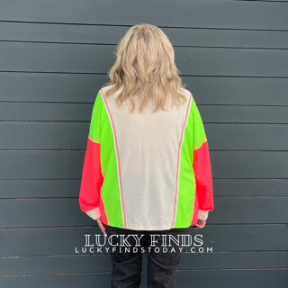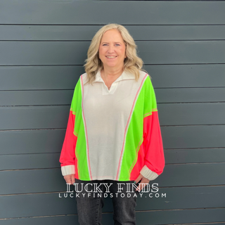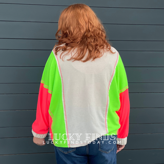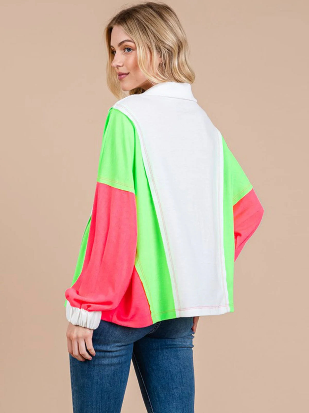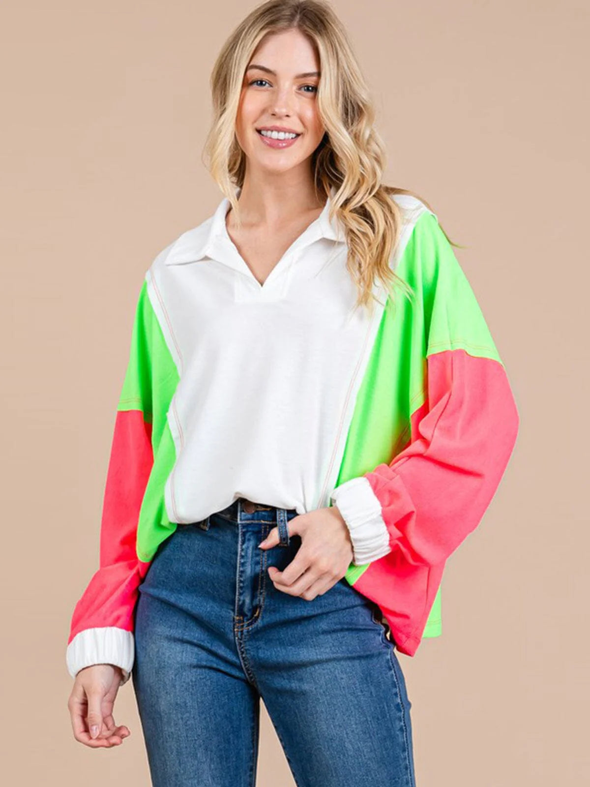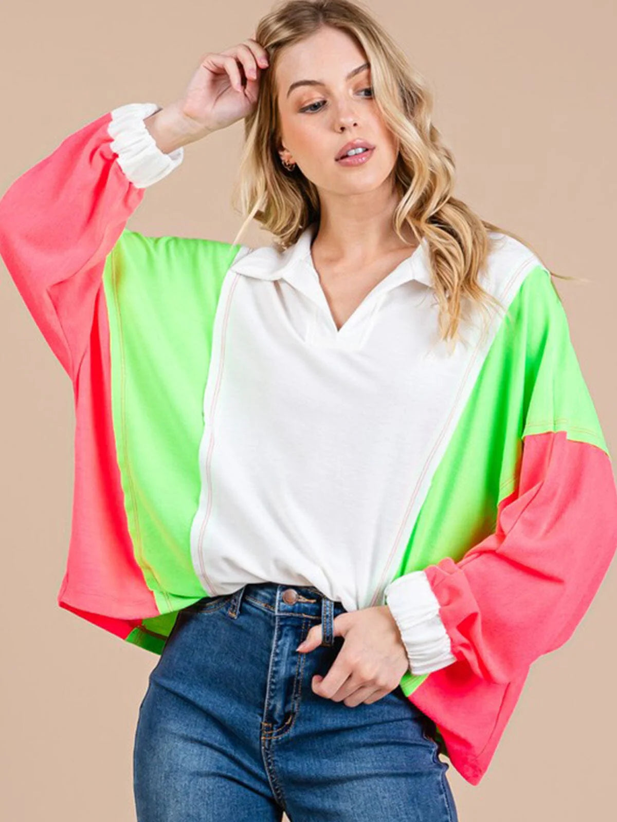 Trendy Oversized Multi Color Block Top w V-Neckline