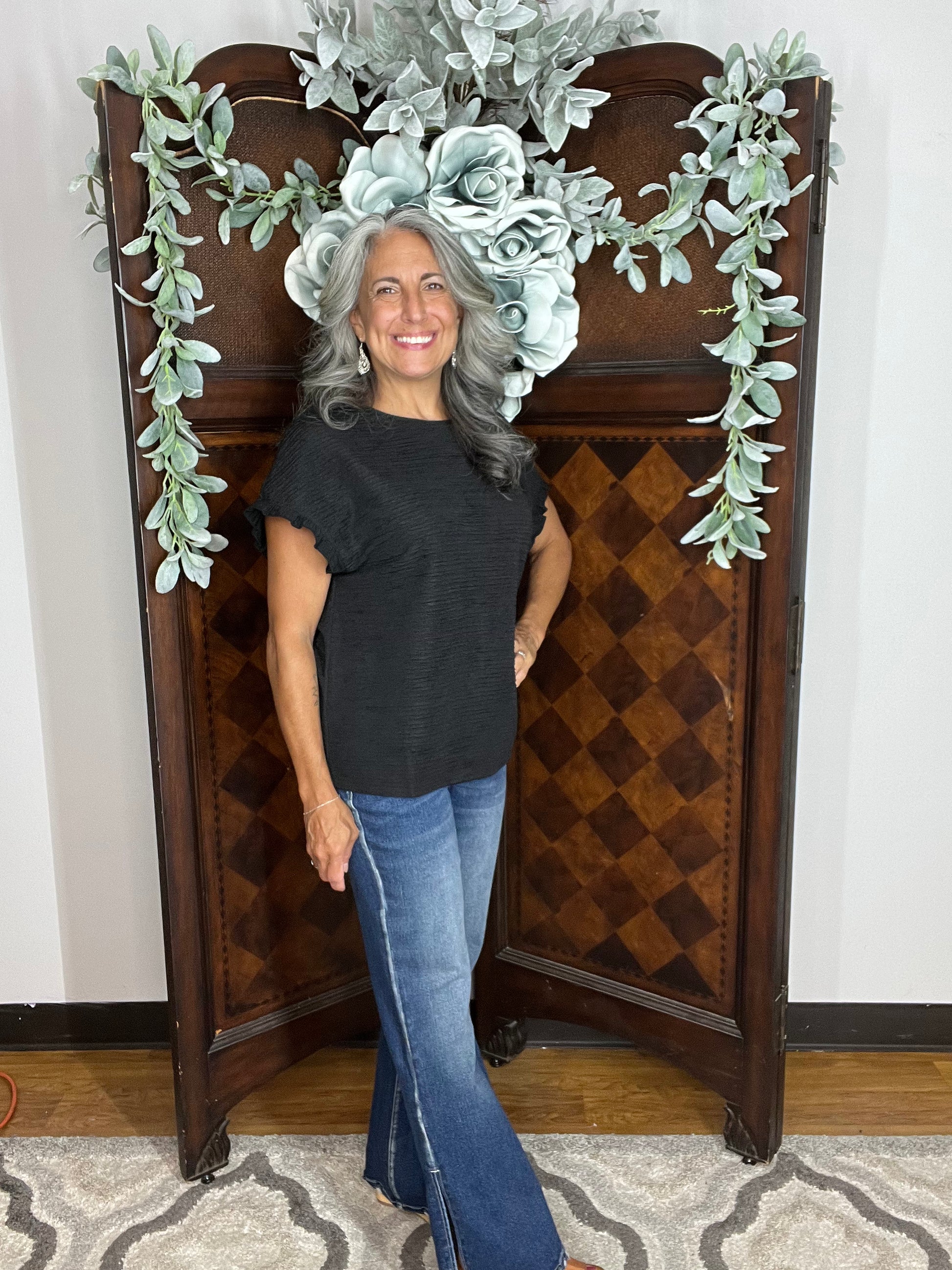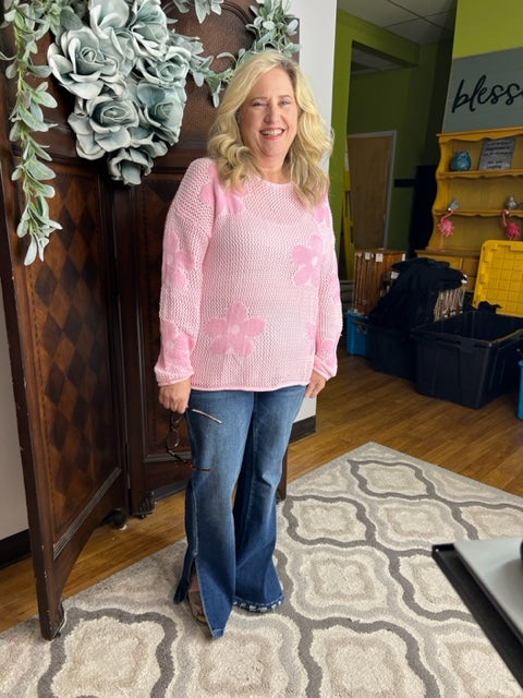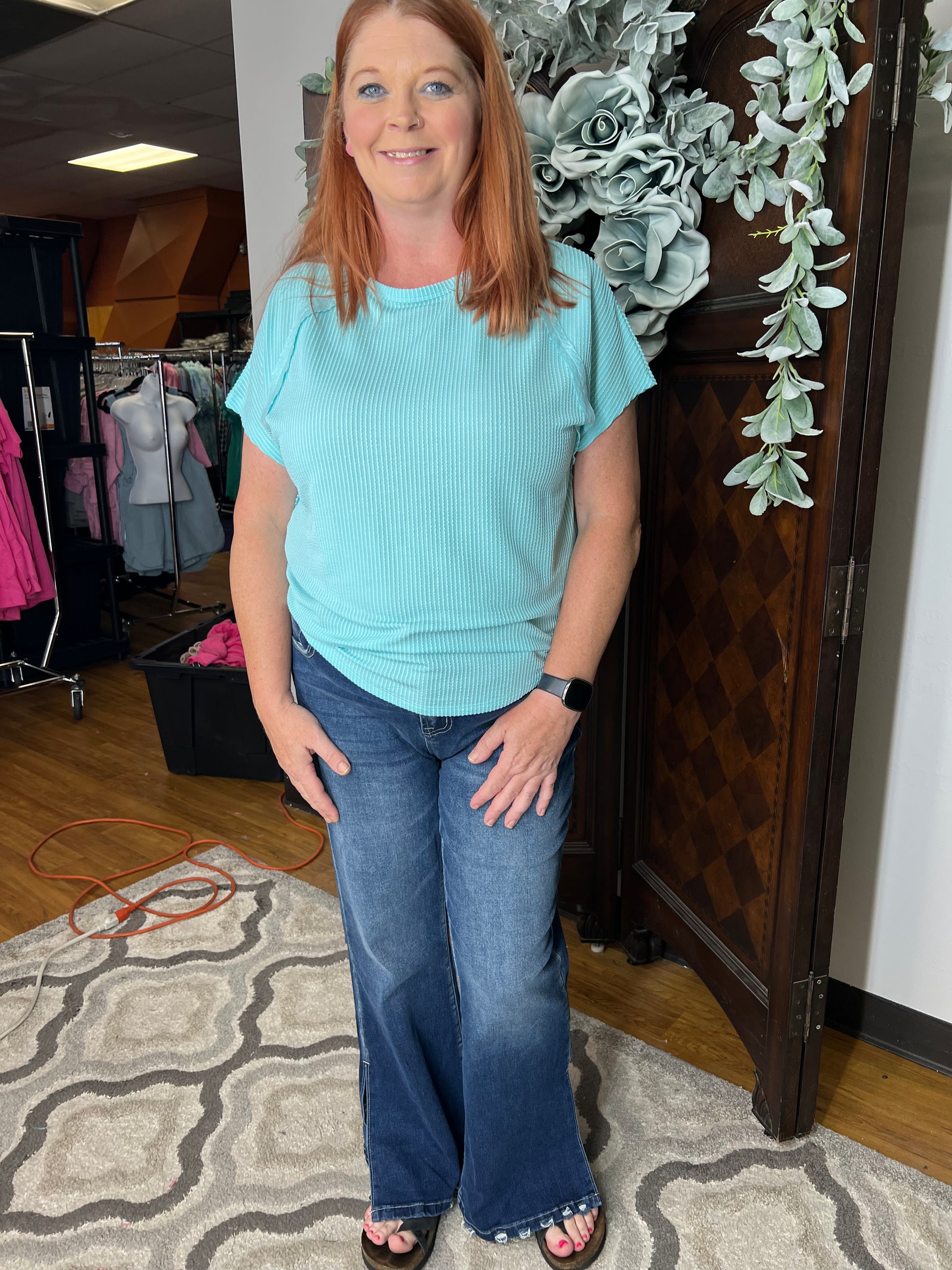 Med Washed Hi-Waist Split Flare Stretchy Denim Jeans