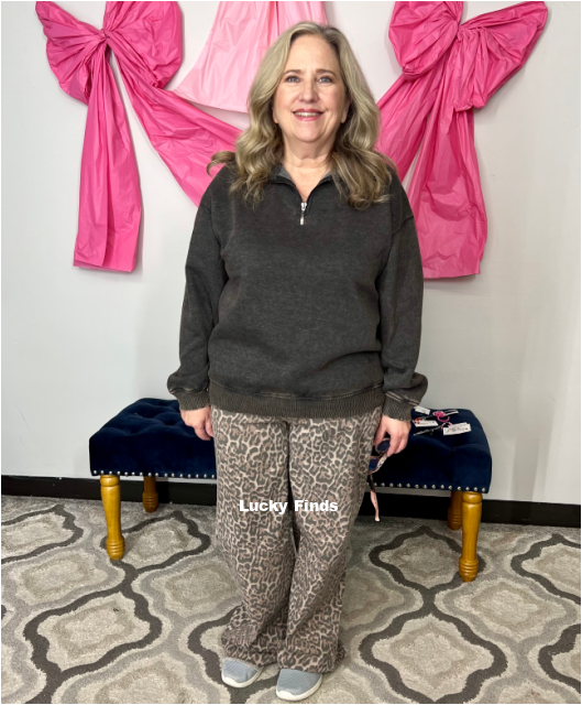 Leopard Print Wide Leg Hi-Waist Jeans w Frayed Hem