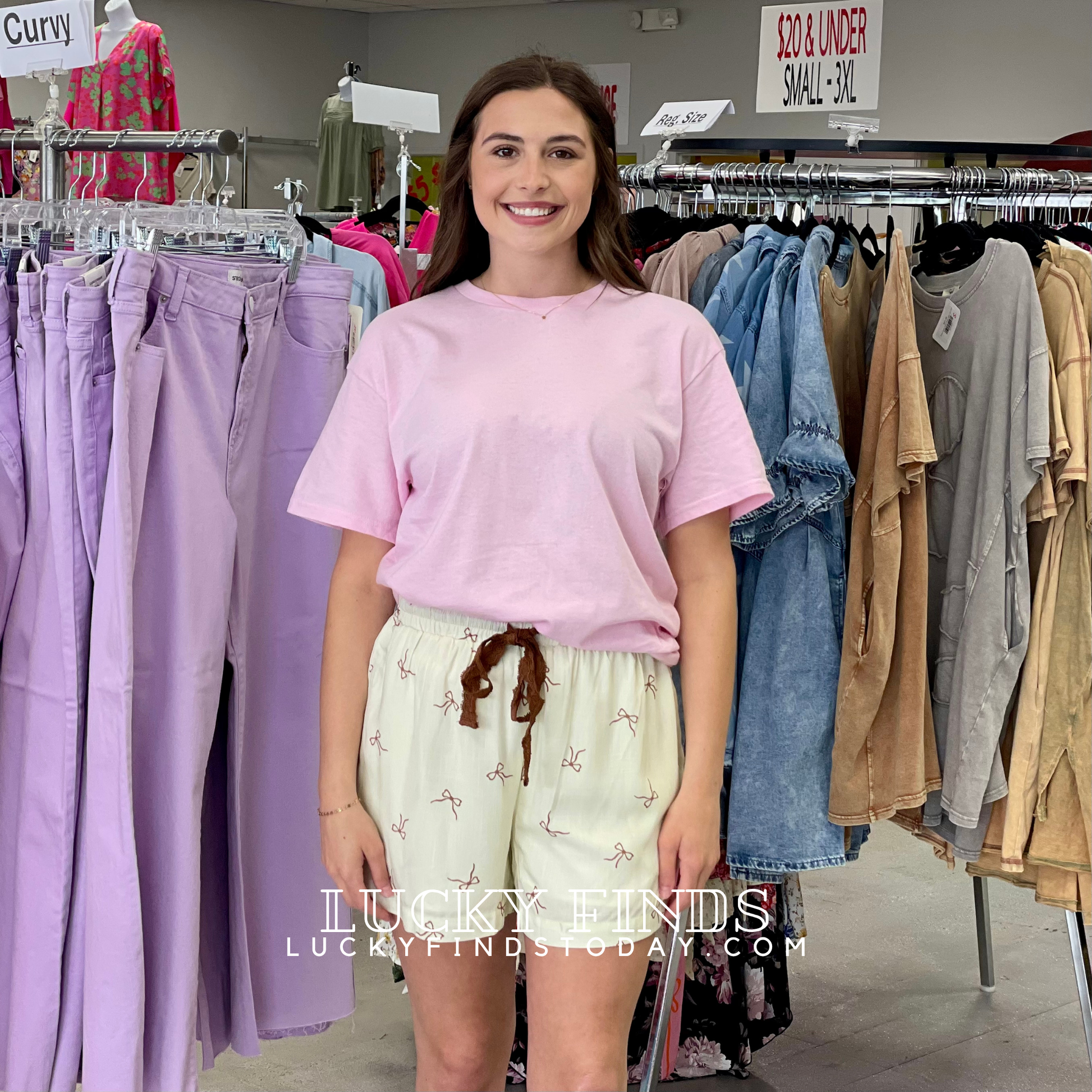 Casual Bow Print Shorts w Draw String Elastic Waist