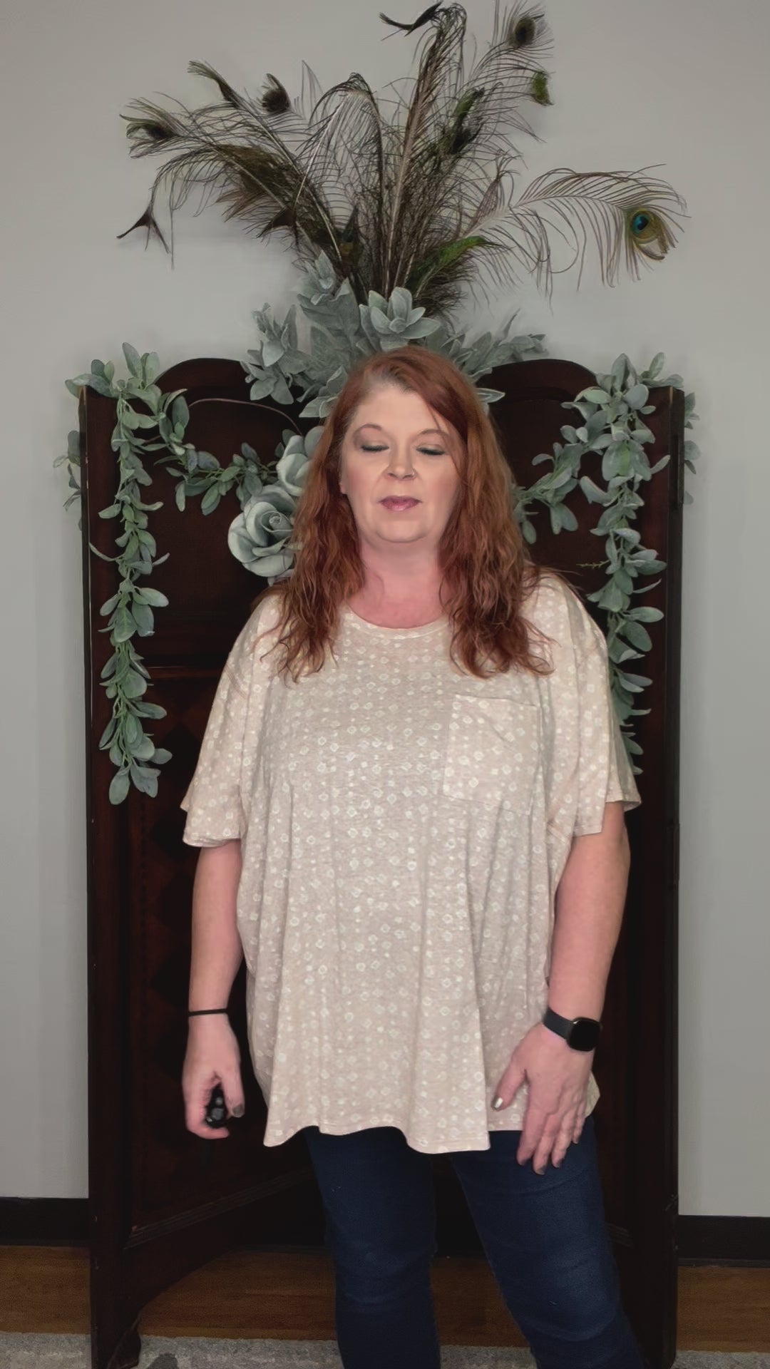 Oversize Ditzy Print Drop Shoulder Top With Front Pocket Detail
