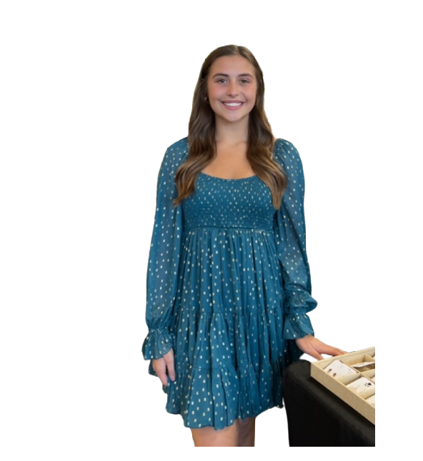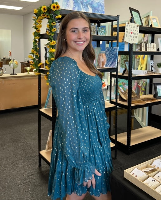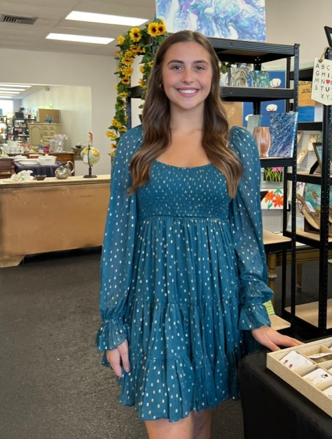 Stylish Ditsy Print Square Neck Smock & Flare Dress