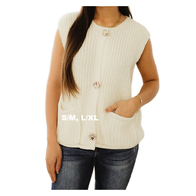 Gorgeous Chunky Knit Sweater Vest w Buttoned & Front Pockets