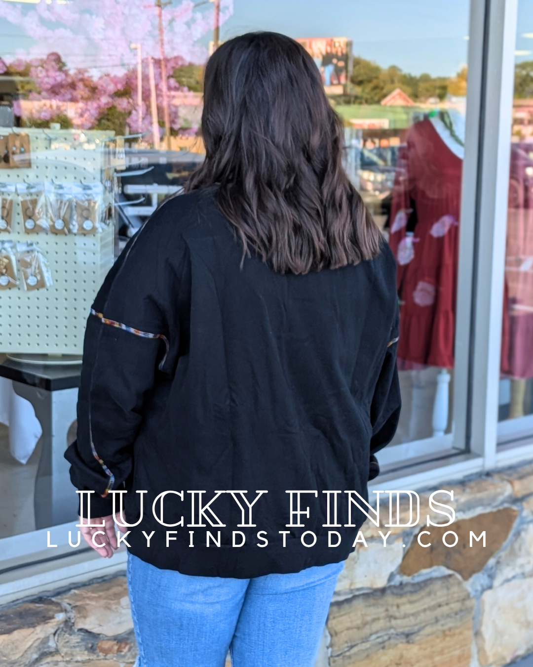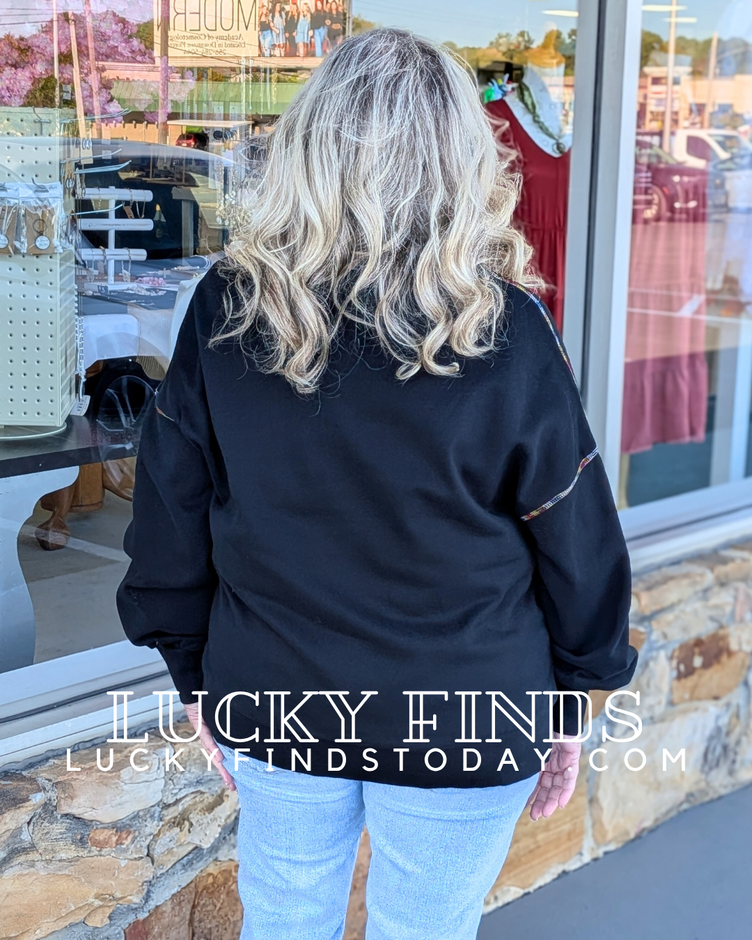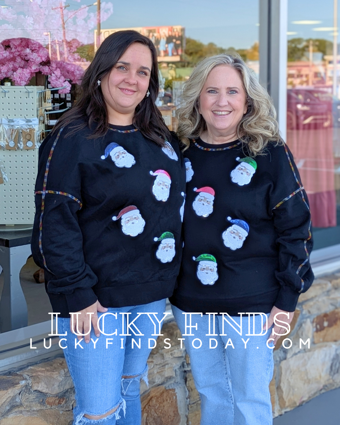 Oversized Santa Glitter Sequin Patch Top w Multi Color Trim Details