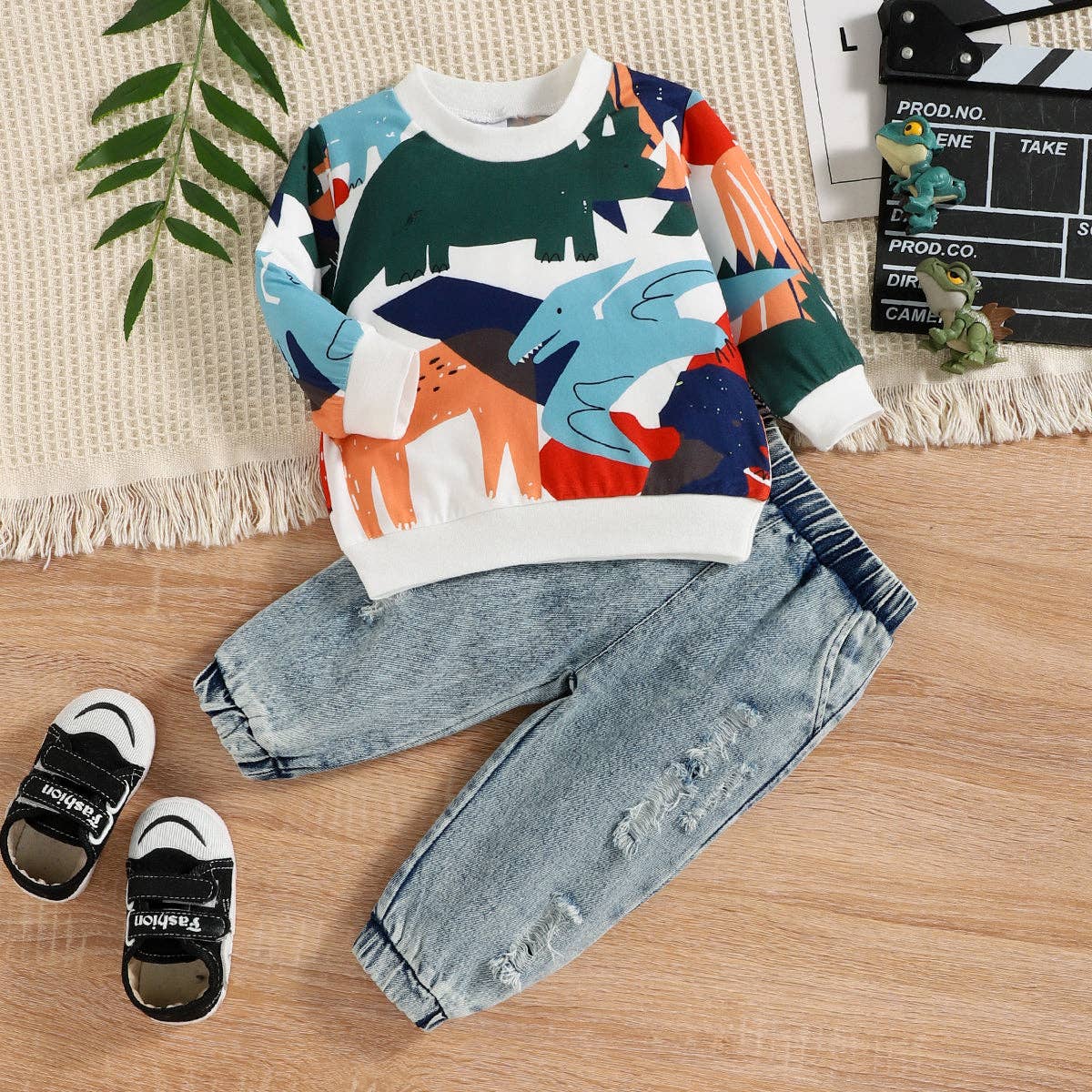 2pcs Baby Boy Dinosaur Sweatshirt
