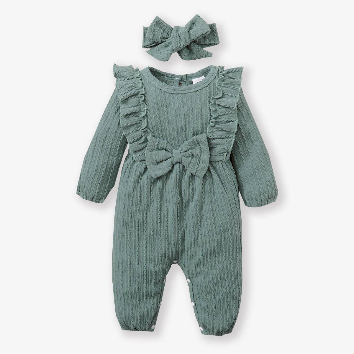 - Each size includes: 1 jumpsuit & 1 headband * Soft and comfy * Waist bowknot * Bottom snaps * Back-neck button closure * Material: 95% Cotton, 5% Spandex * Machine wash, tumble dry * Imported