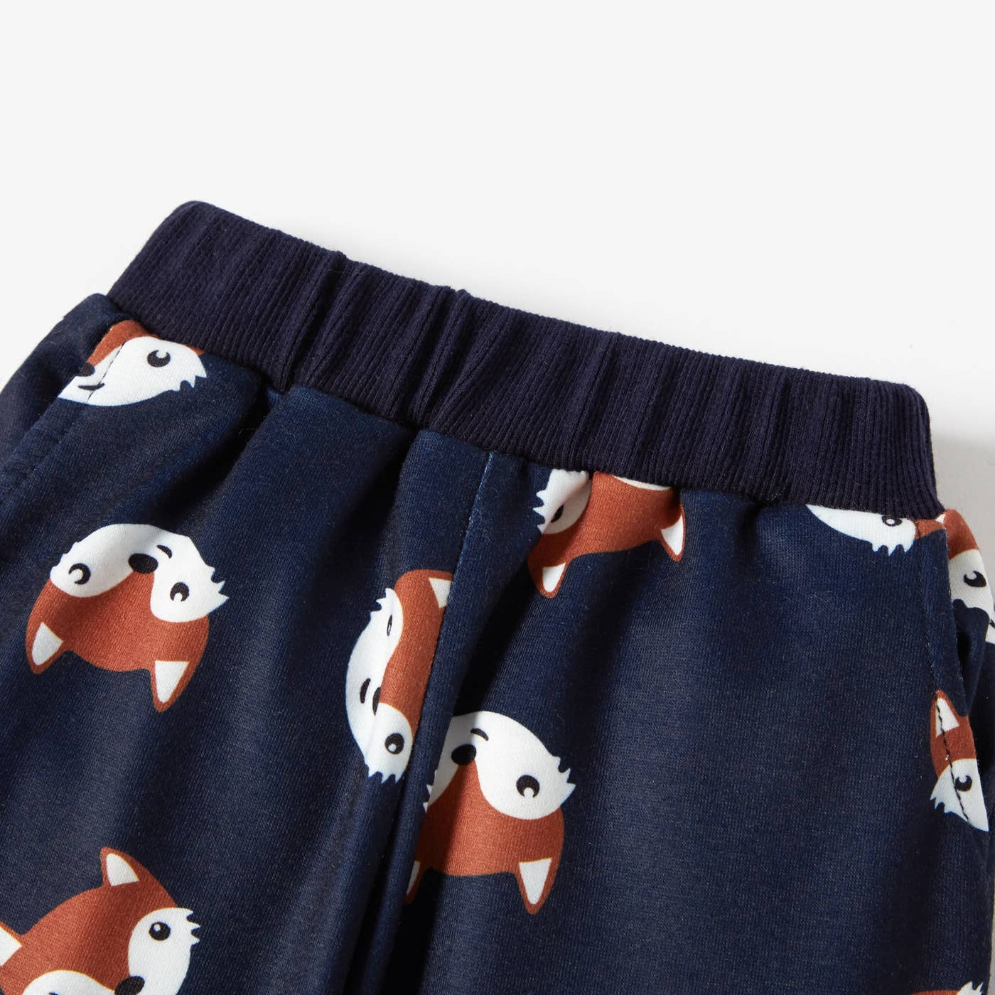 - 2pcs Cartoon Fox Navy Baby Cotton Pullover and Pants Set