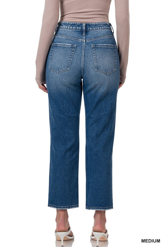 Stylish High Rise Straight Crop Jeans