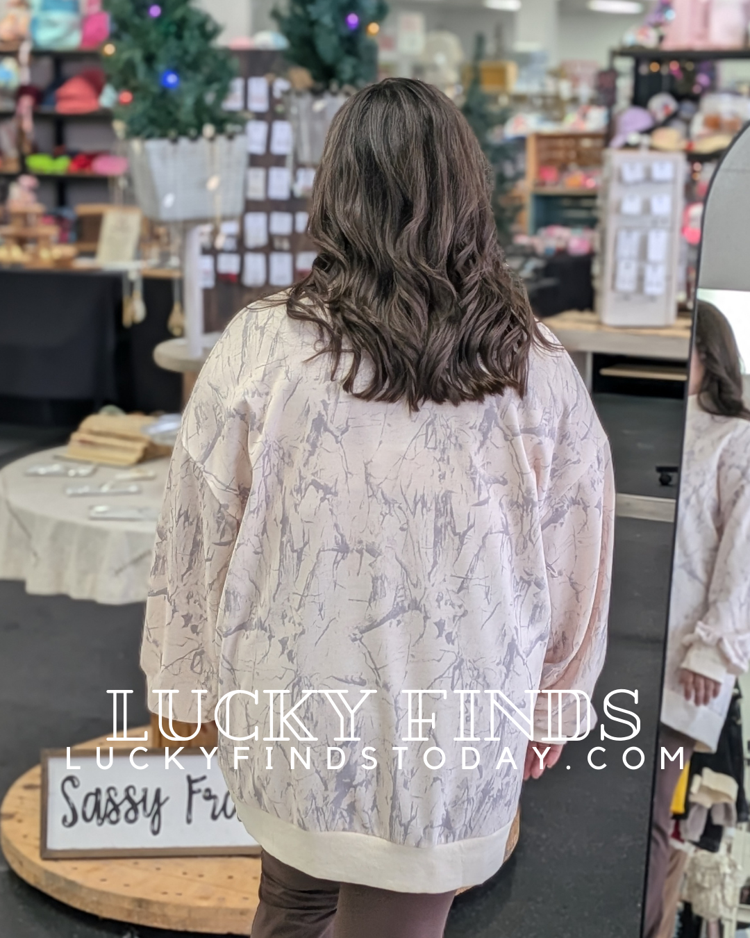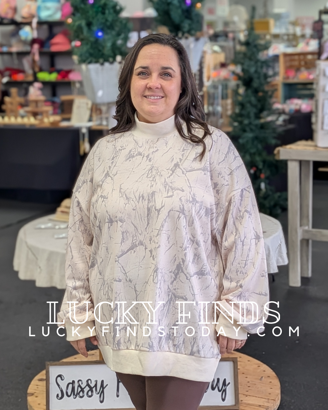 Trendy Oversized Lt. Camo Mock Neck Baggy Sweatshirt
