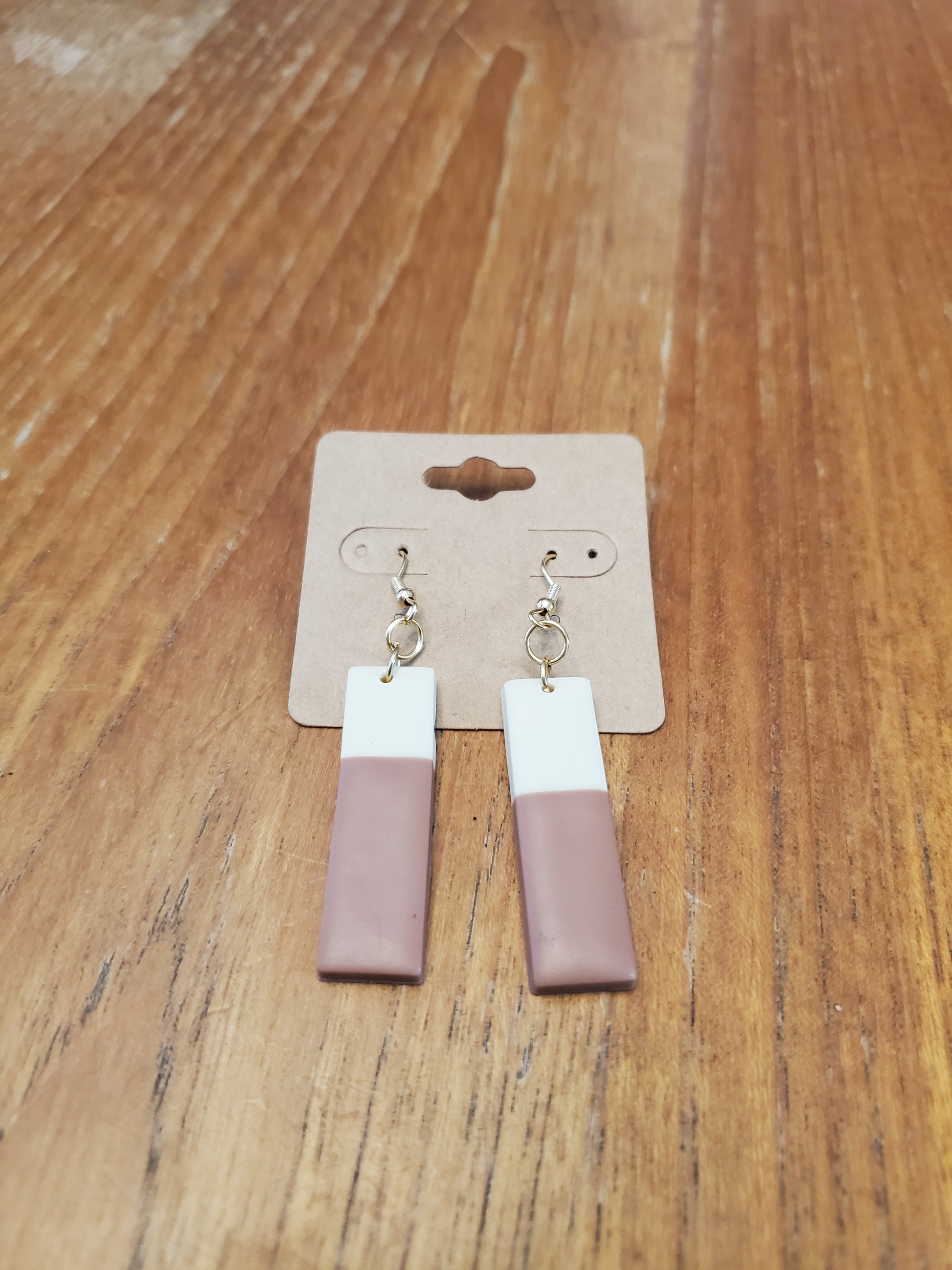 Polymer clay 2 tone bar earrings done in cream and mauve. Lightweight with hook style and gold accents approx 1 1/2" drop