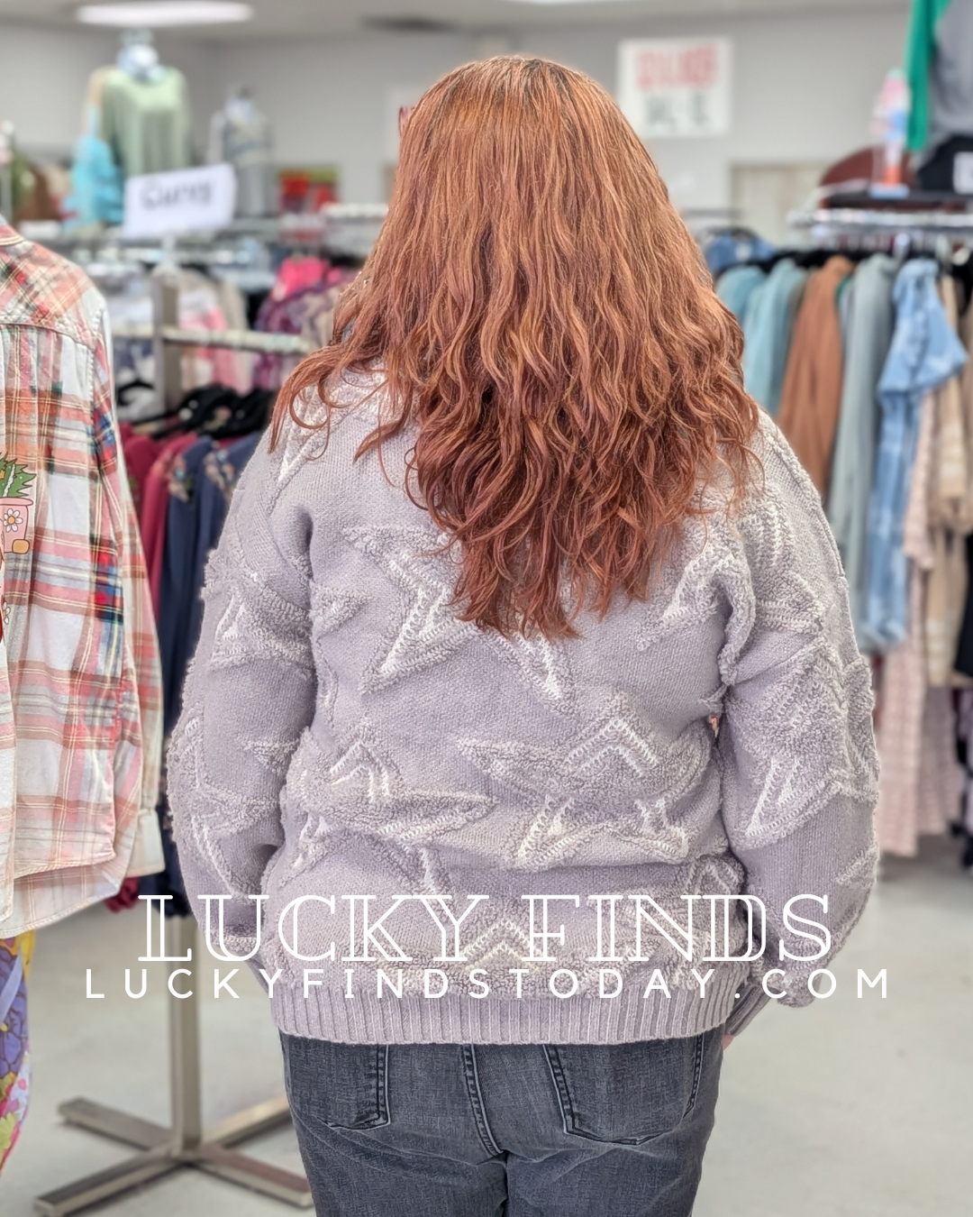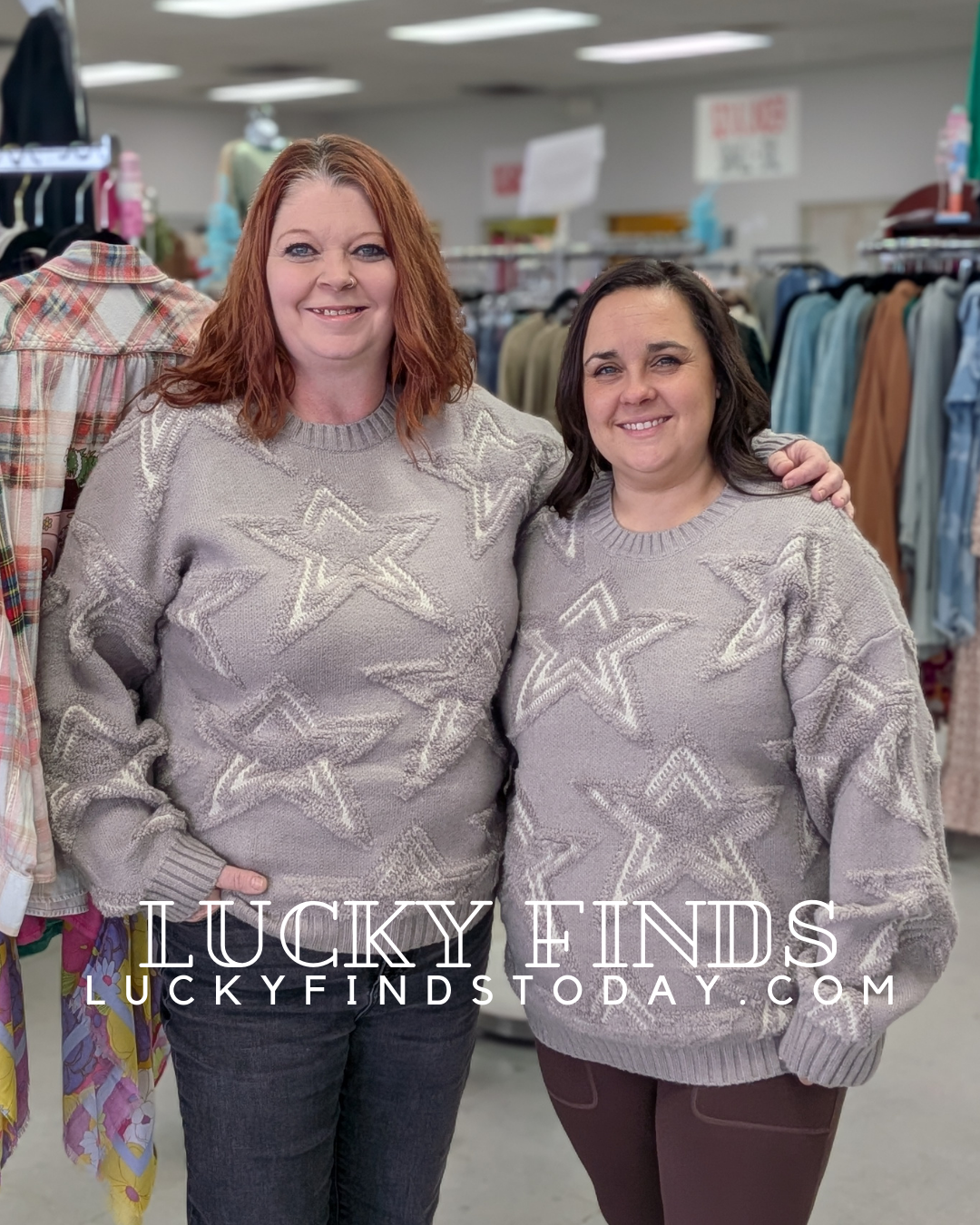 Cozy Comfy Star Print Knit Sweater Top w Ribbed Cuffs & Hem, Realxed Fit