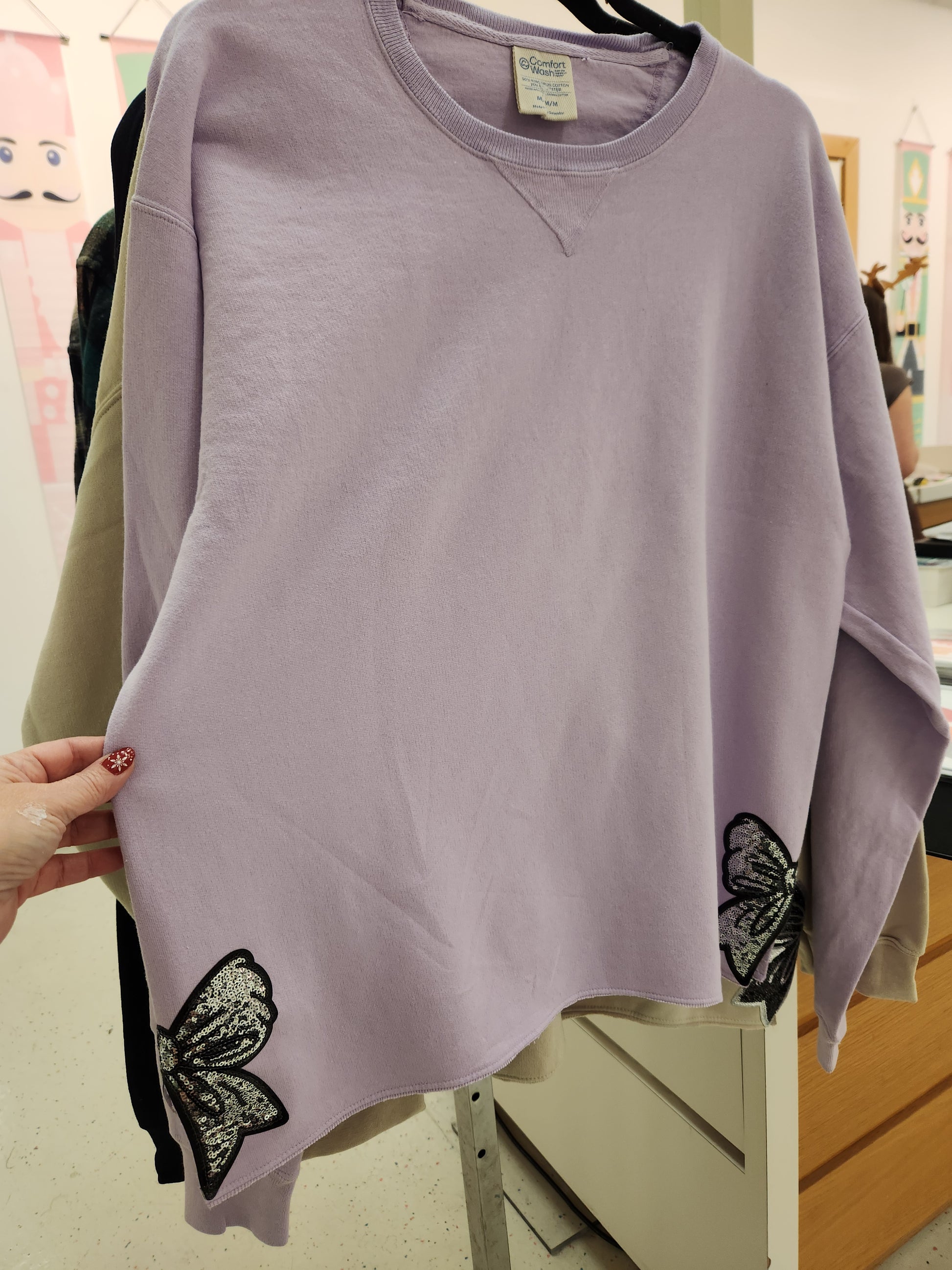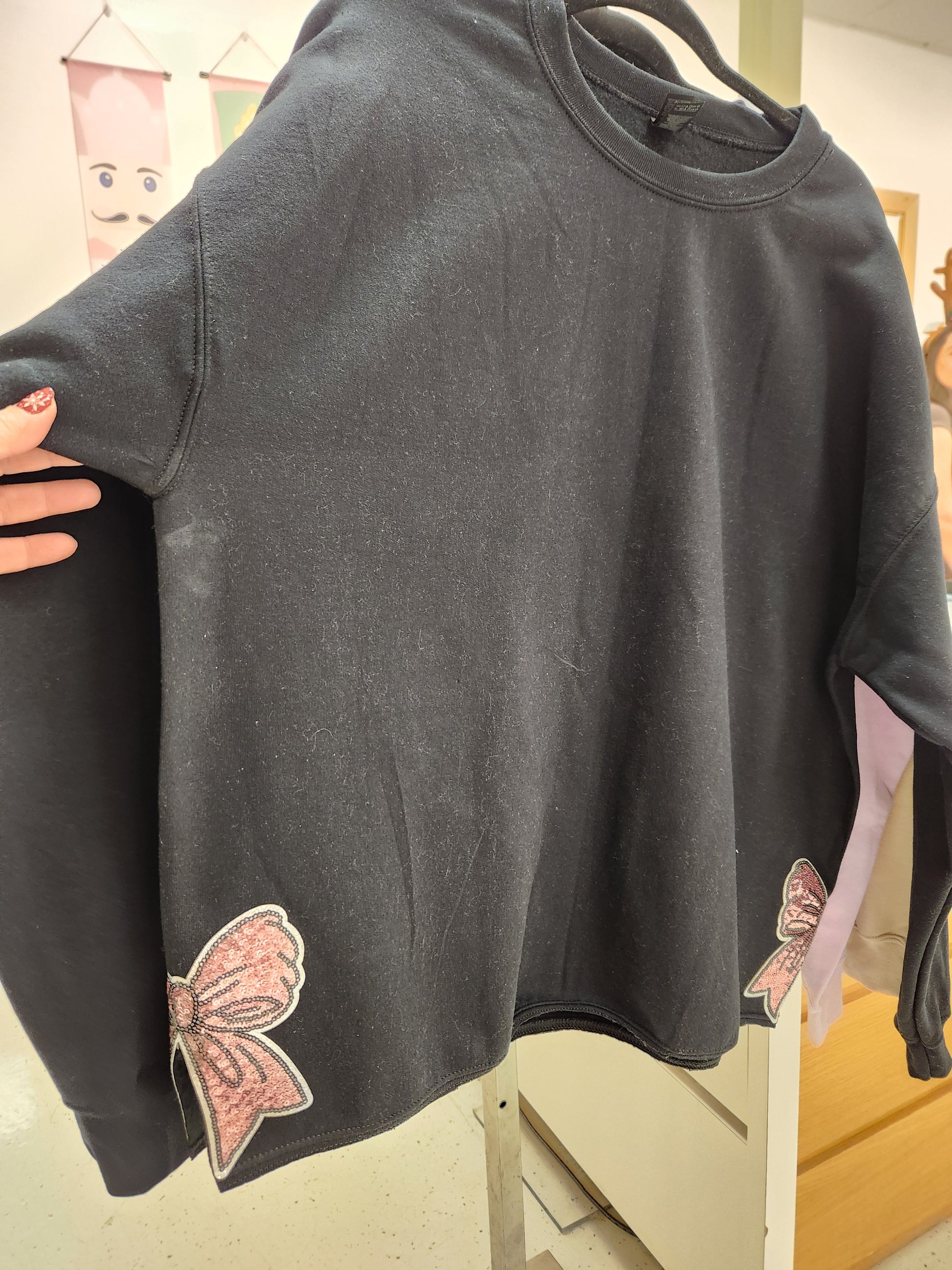 The latest trend in sweatshirts and patches. Side Bow patches applies to sweatshirts. Pick your Sweatshirt size and color and pick the coordinating bow patches we will press and ship.