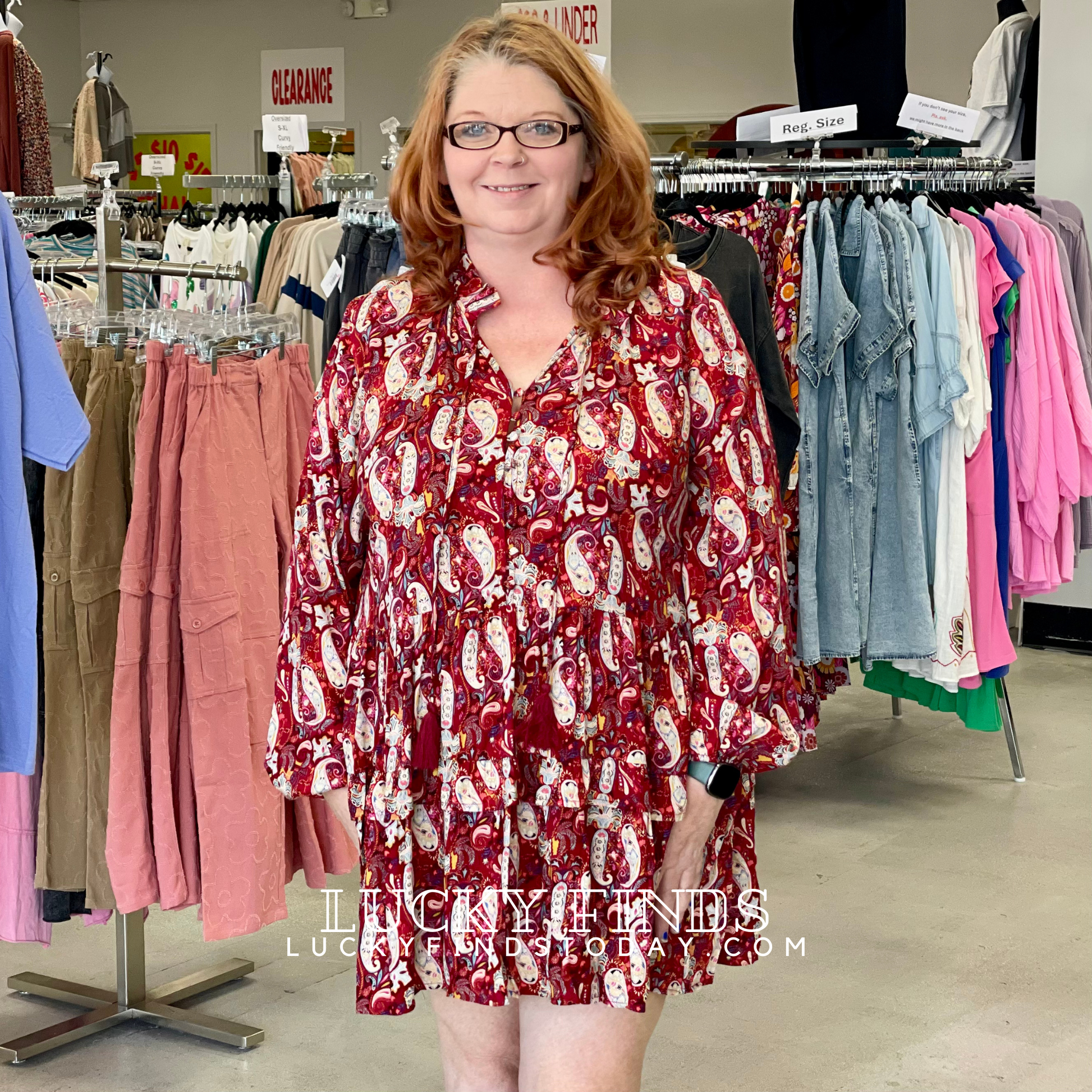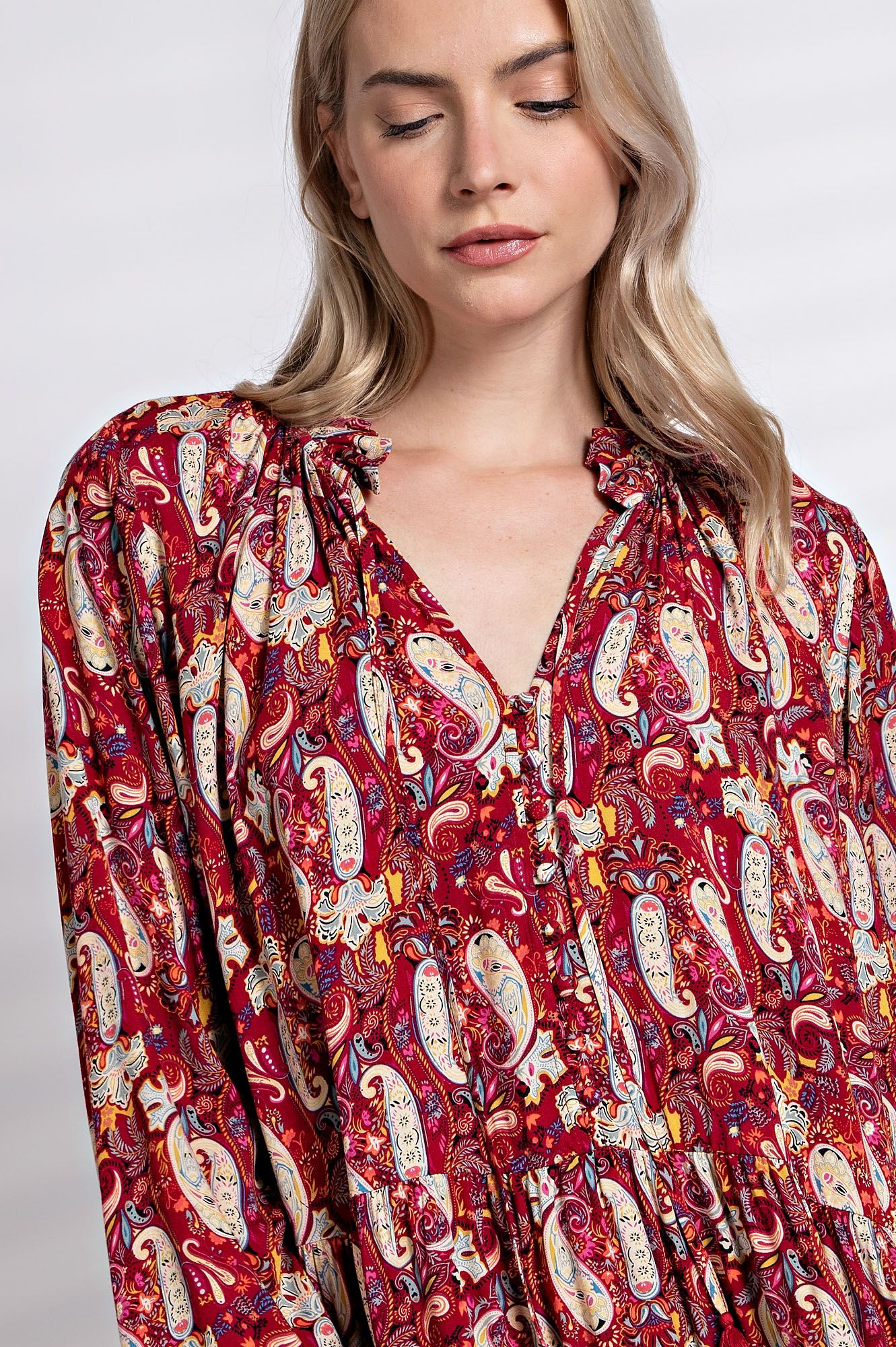 Radiant Oversized Flowy Tired Bubble Sleeve Dress w Quarter Button Front,