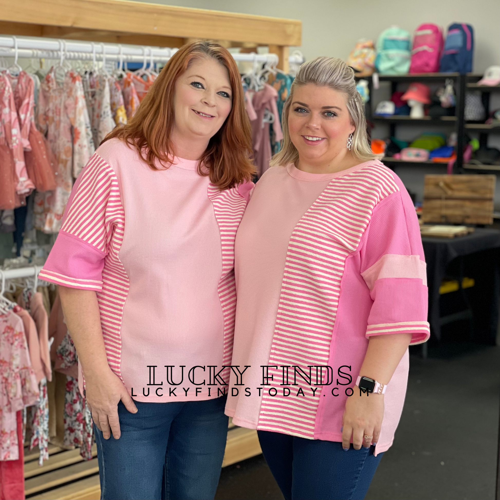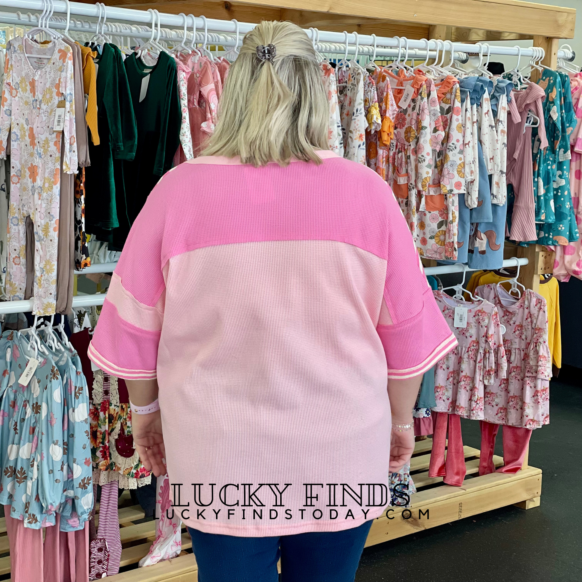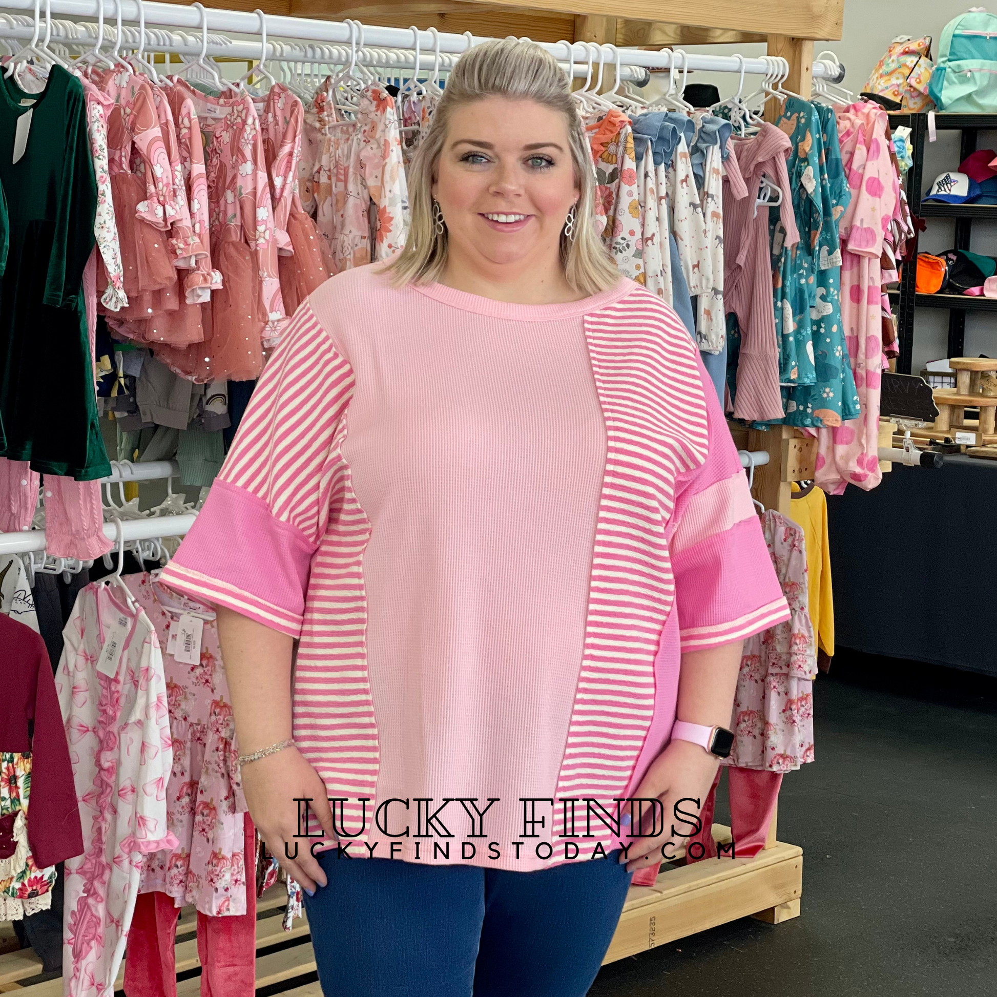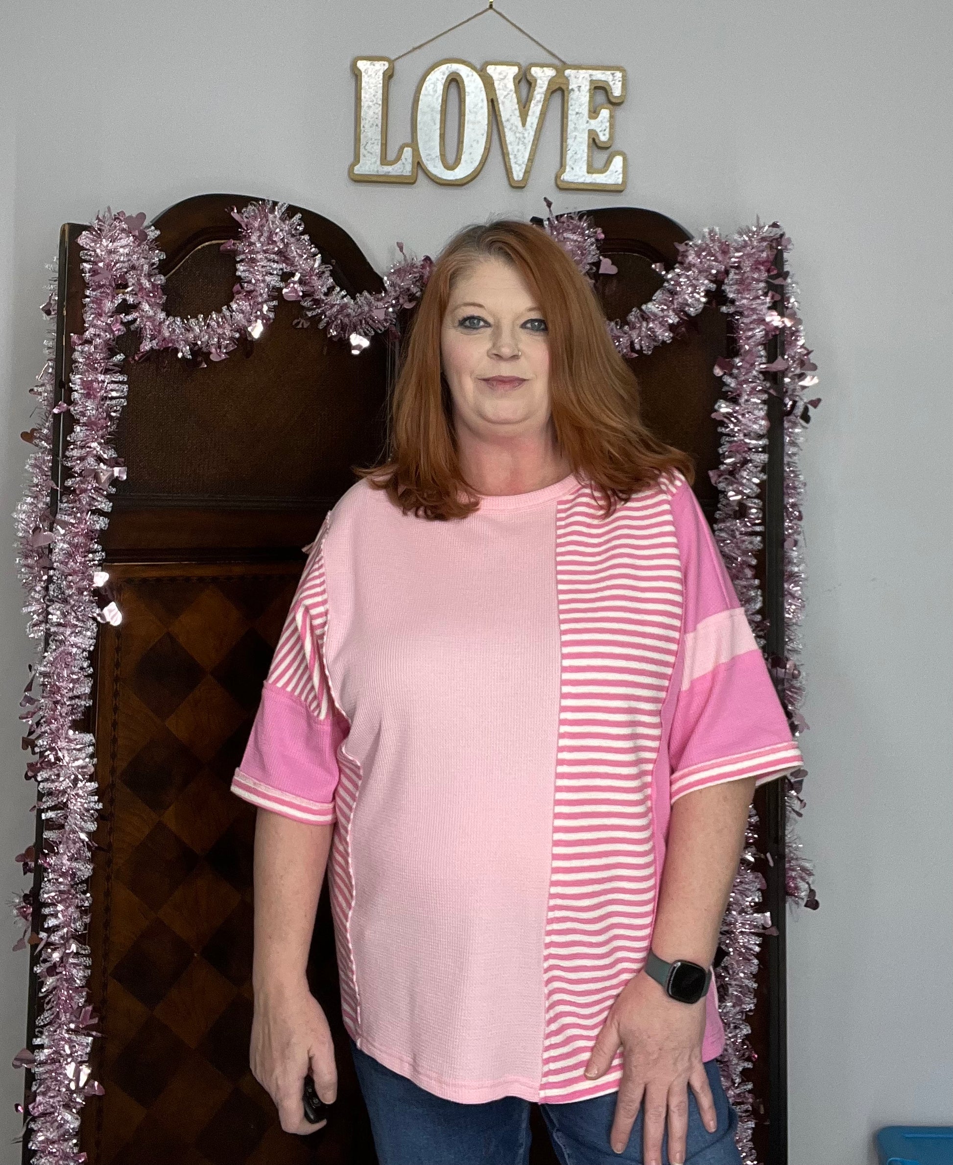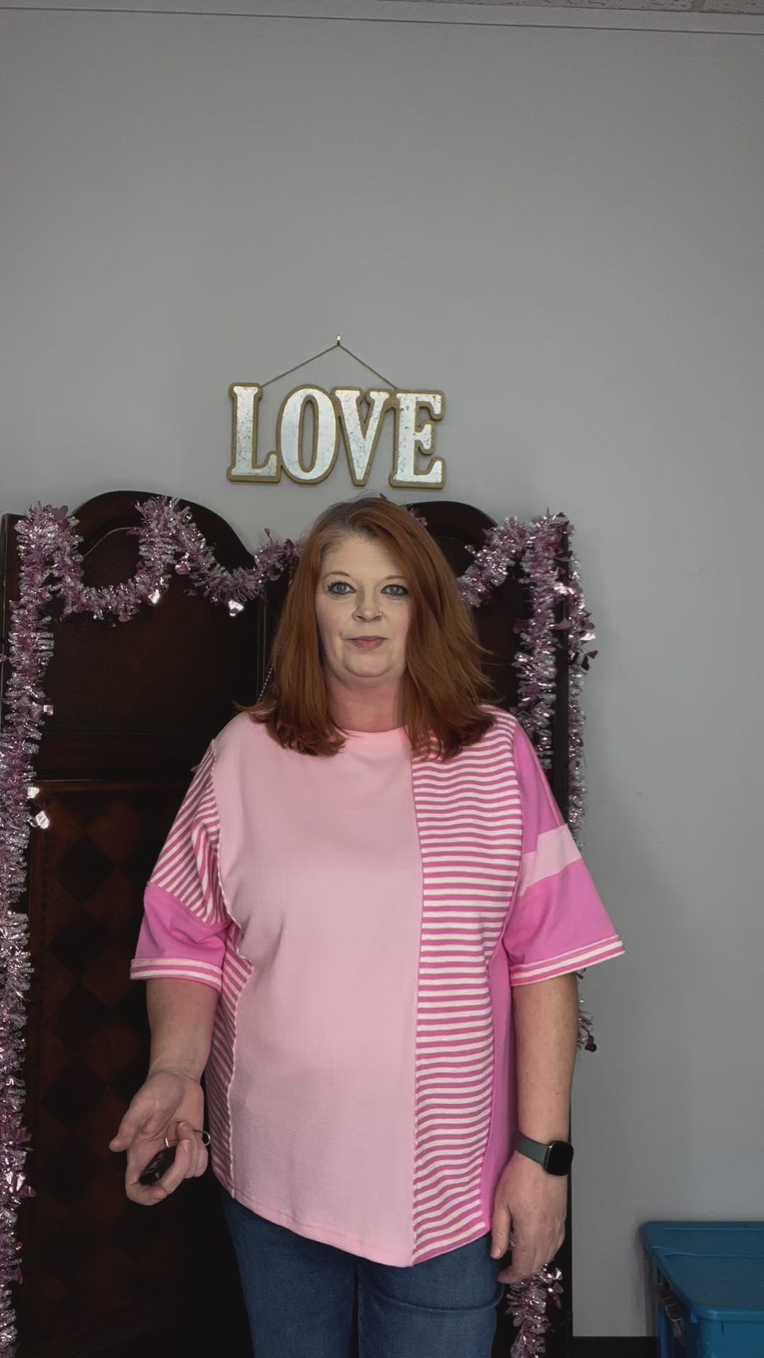 Stylish Oversized Mix & Match Pattern Patchwork Top w Exposed Seams & Trim Details