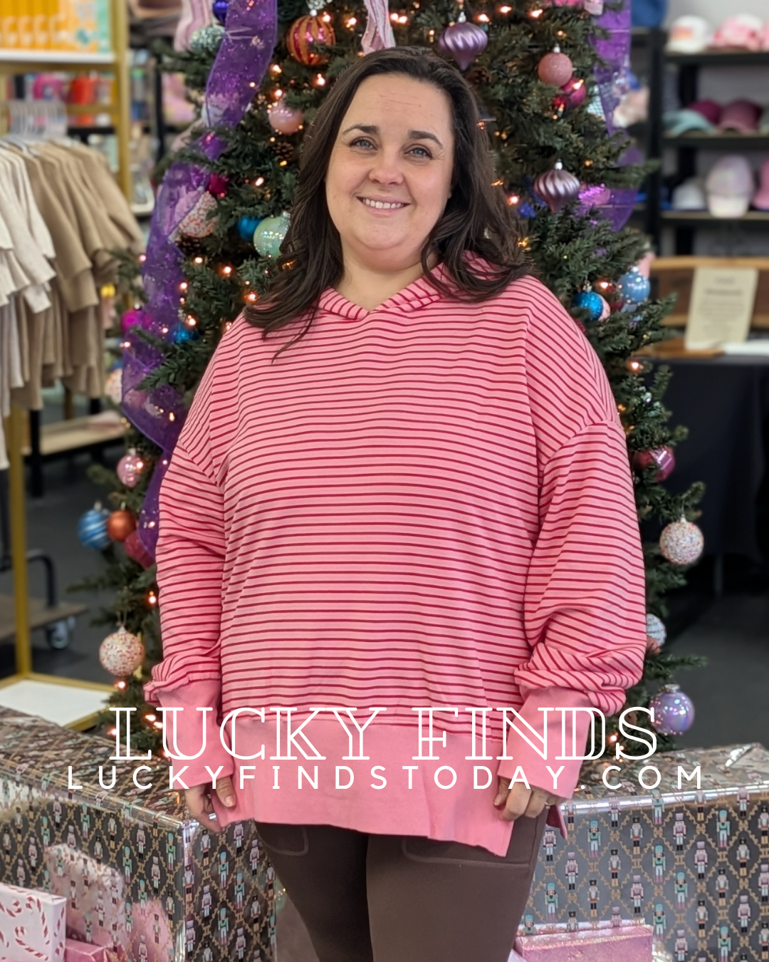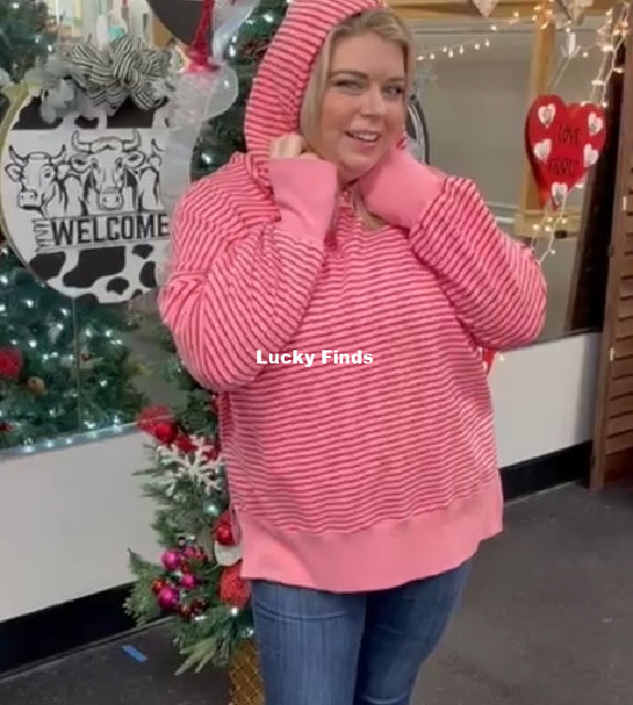 Elevate your casual wardrobe with this sophisticated oversized hoodie, featuring bold stripes that create a refined silhouette. The drop shoulder design offers a relaxed, contemporary fit, while functional thumbholes keep sleeves in place during active moments. Strategically placed side slits add movement and visual interest to the piece. Crafted for comfort without compromising style, this versatile top transitions seamlessly from weekend lounging to casual outings, making it an essential addition to any modern wardrobe.