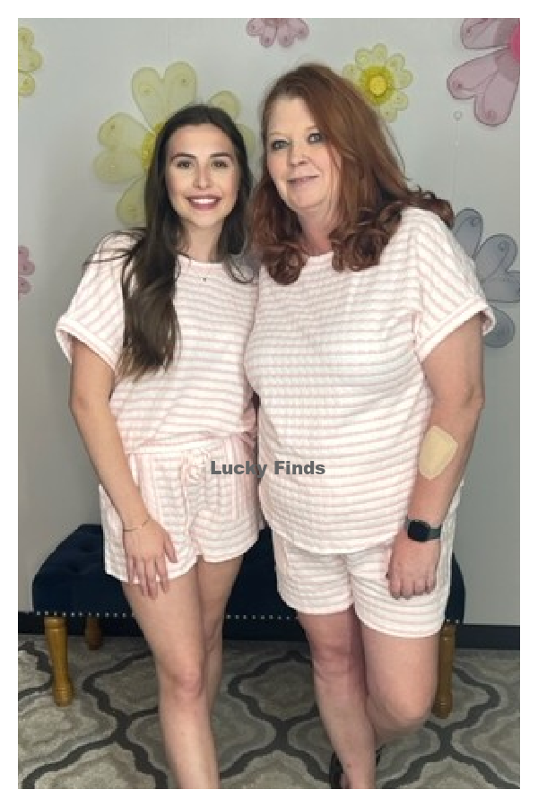Soft & Stretchy Textured Stripe Knit 2 Pieces Shorts Set w Elastic Waist Tie