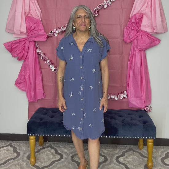 Amazing Linen Blend Ribbon Embroider Shirt Dress