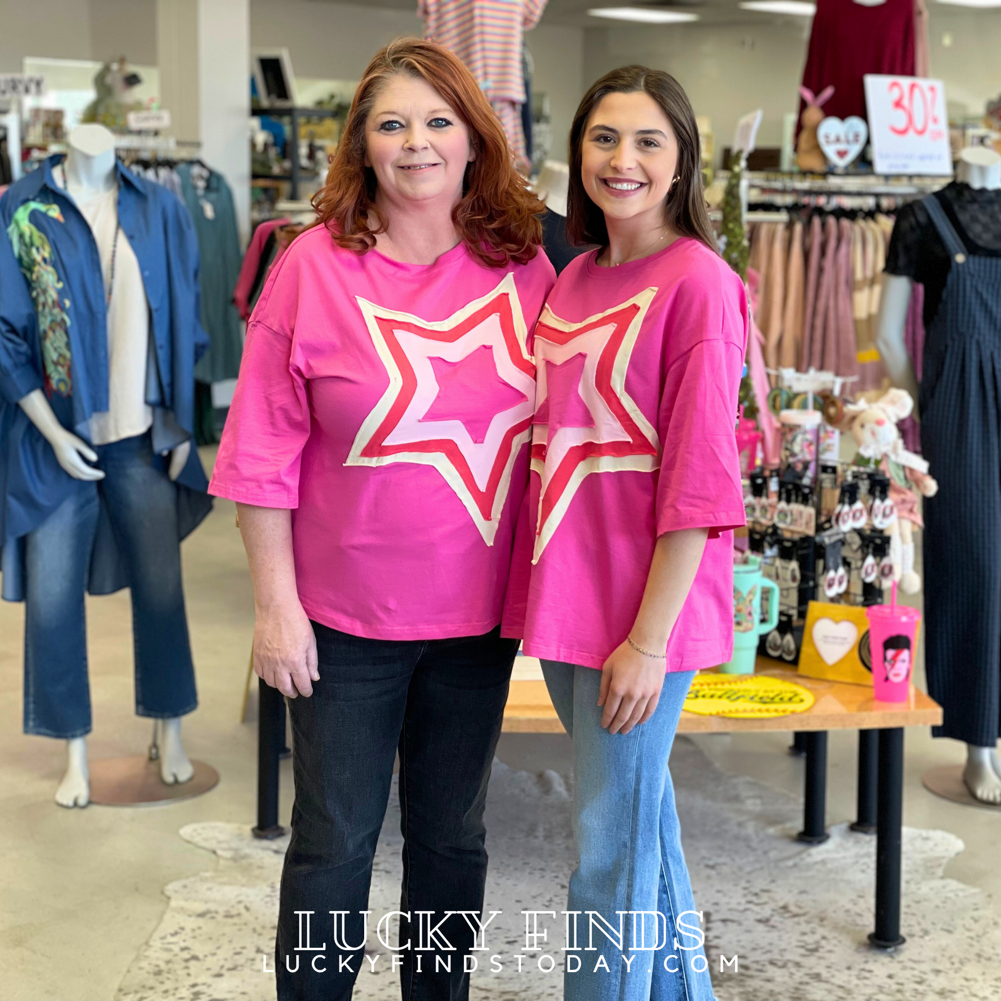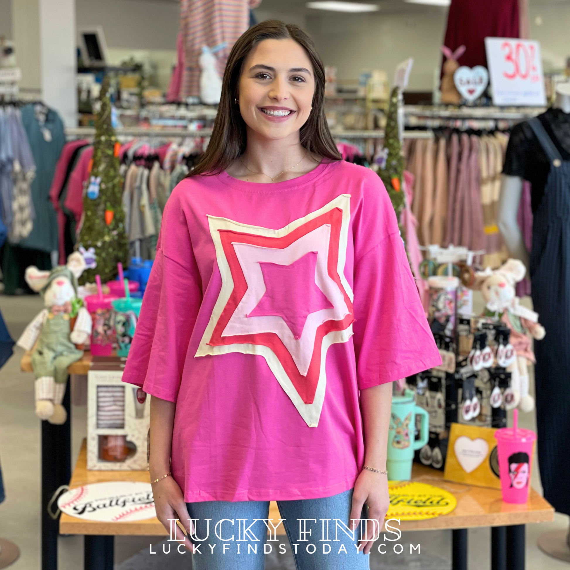 Stylish Oversized Colorblock Front Star Patch Top in Half Sleeve