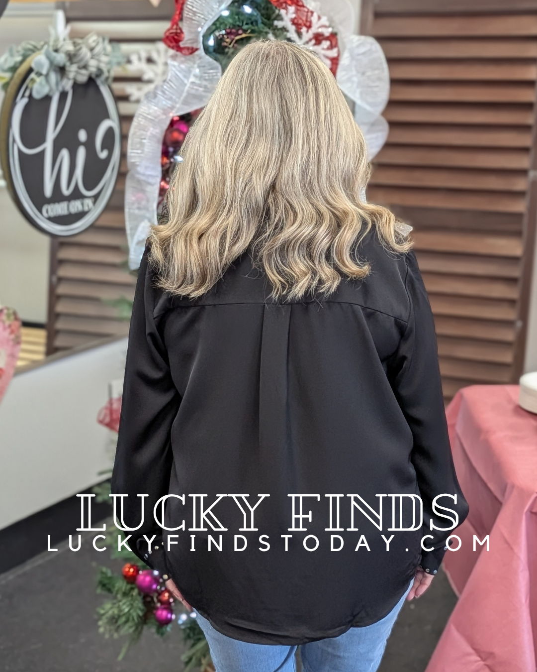 Gorgeous Studded Details Front Patch Pocket Top w Metal Button Closure